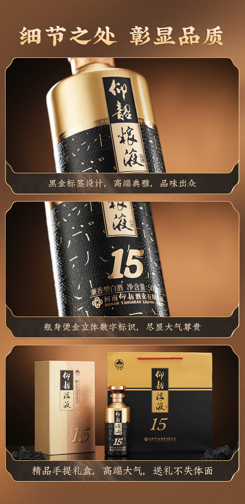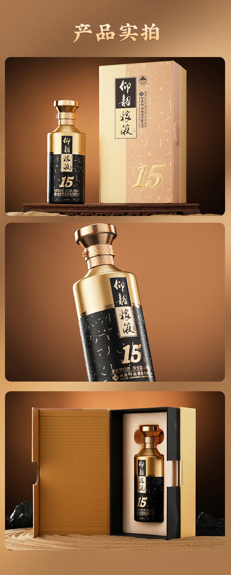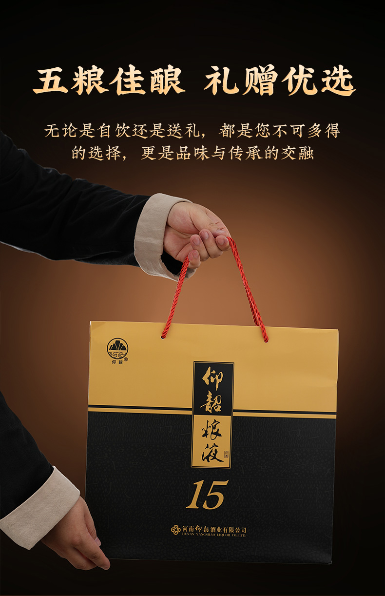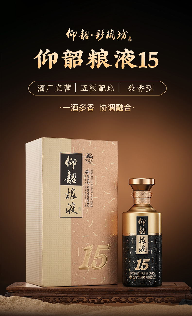 仰韶粮液15 白酒整箱6瓶 52度 500ml 兼香型白酒 纯粮食酒 整箱六瓶