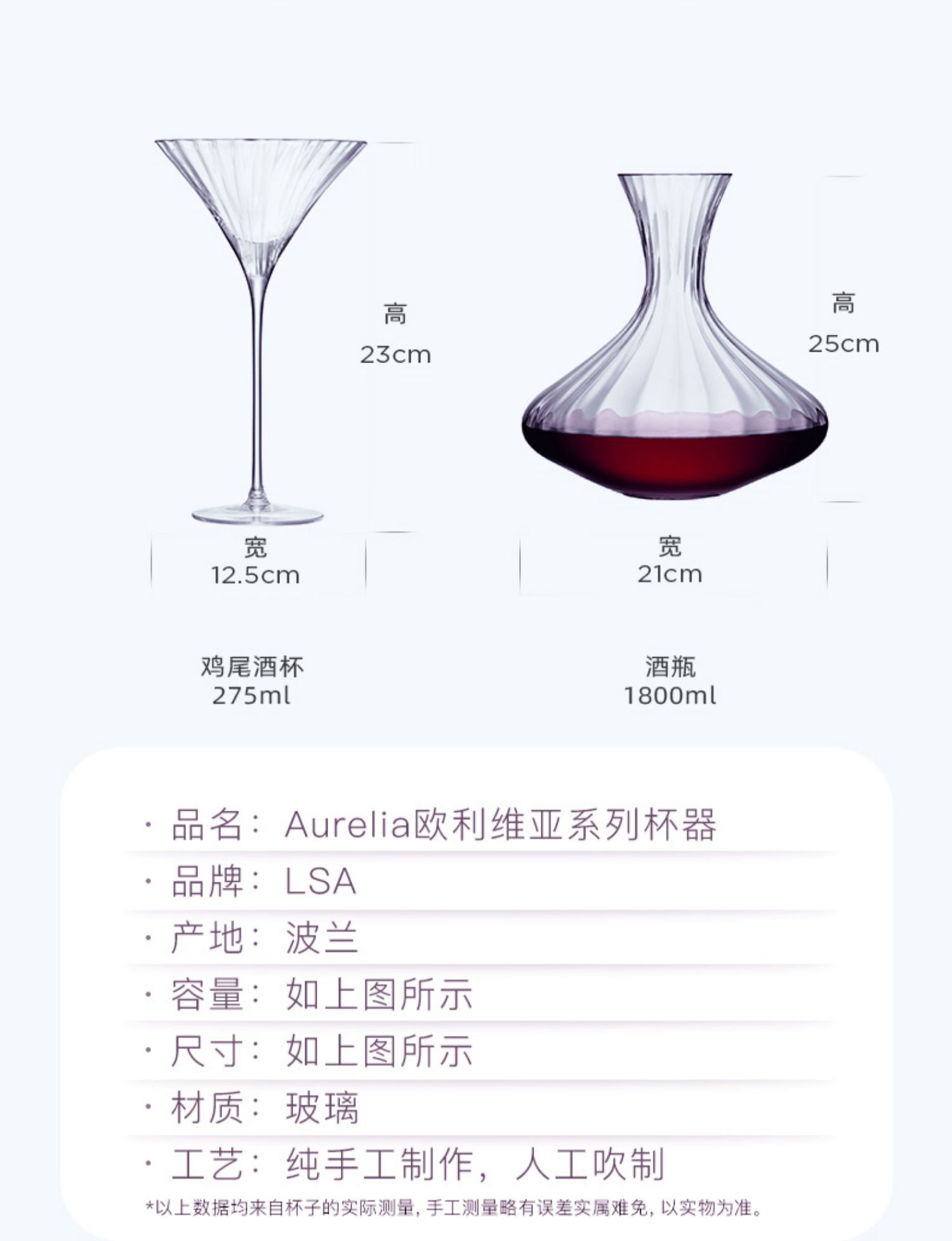 LSA Aurelia系列手工玻璃酒杯家用醒酒器创意香槟杯红酒杯高脚杯送礼套装