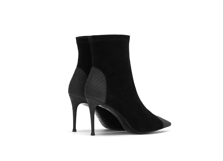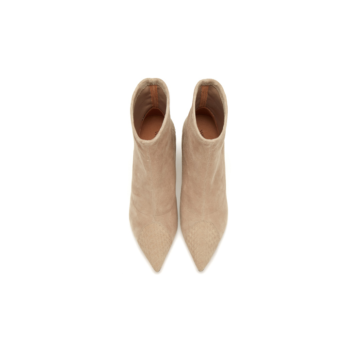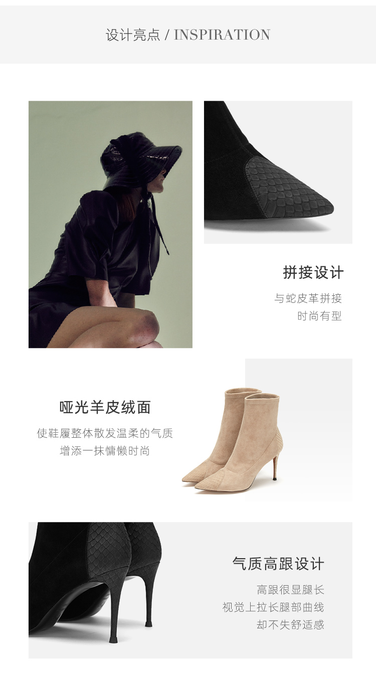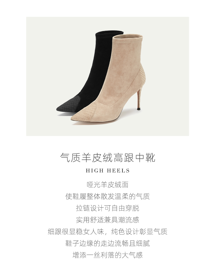 westory2020冬季新版小羊皮时装靴女尖头细跟中筒靴W20DS80231