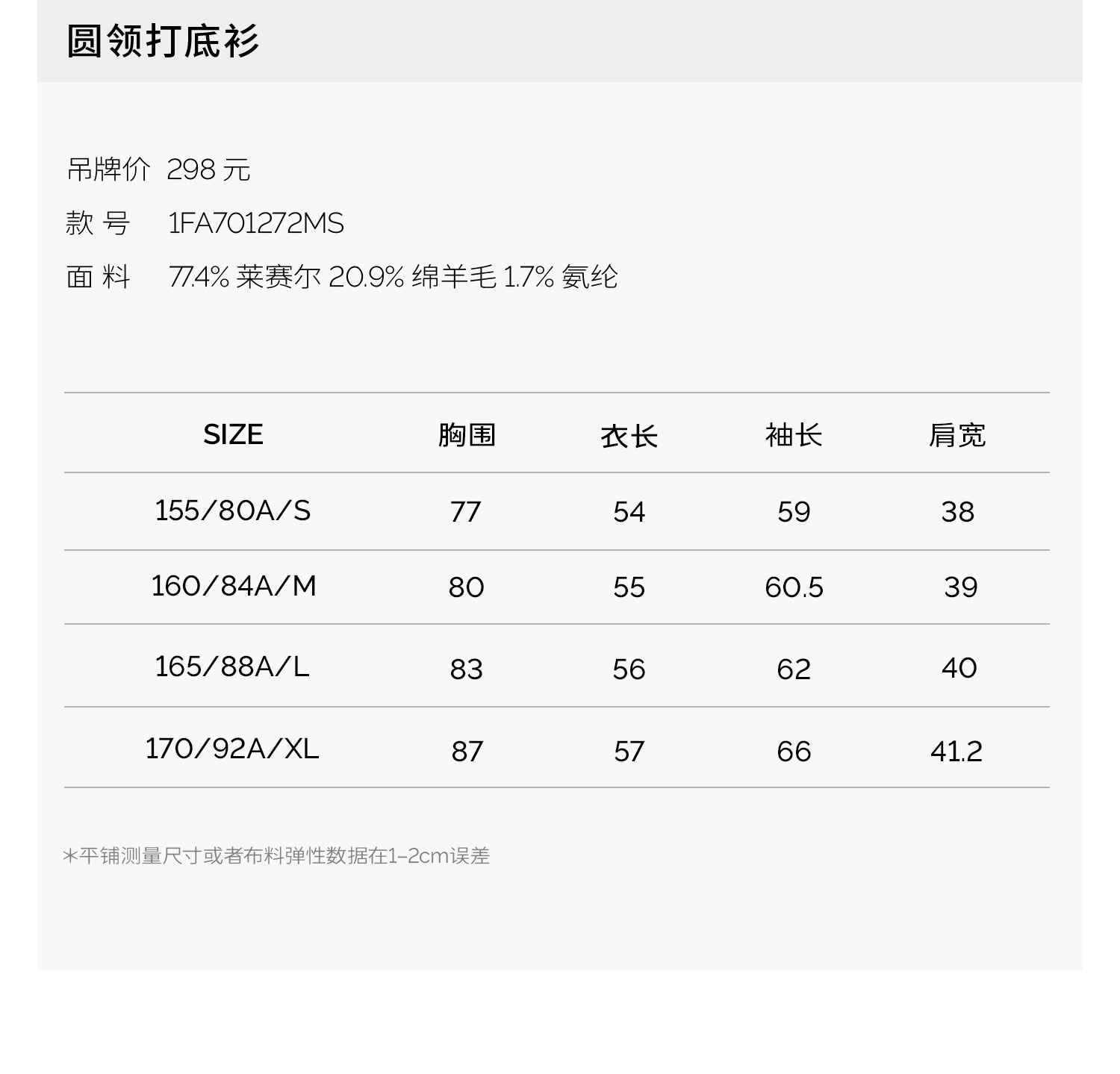 【商场同款】【商场同款】伊芙丽圆领显瘦长袖T恤打底衫1FA701272MS