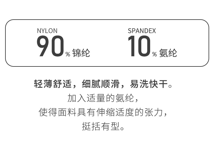 | 安全等级: B类 | 材质成分: 聚酰胺纤维(锦纶)90% 聚氨酯弹性纤维(氨纶)10% |