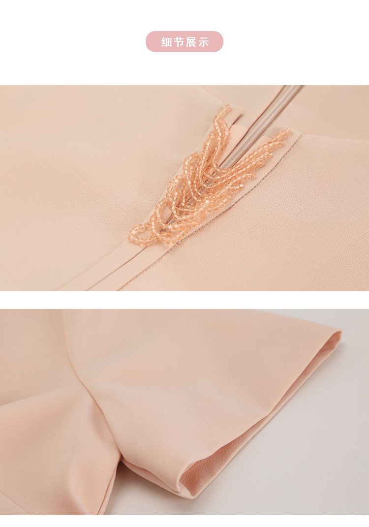 QF8E7斯尔丽25新款法式优雅丝毛小礼服领口晶莹水晶流苏放摆轻奢连衣裙