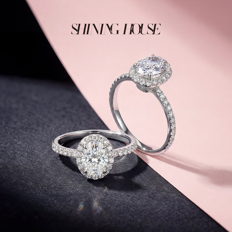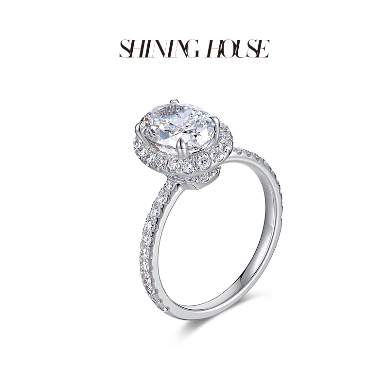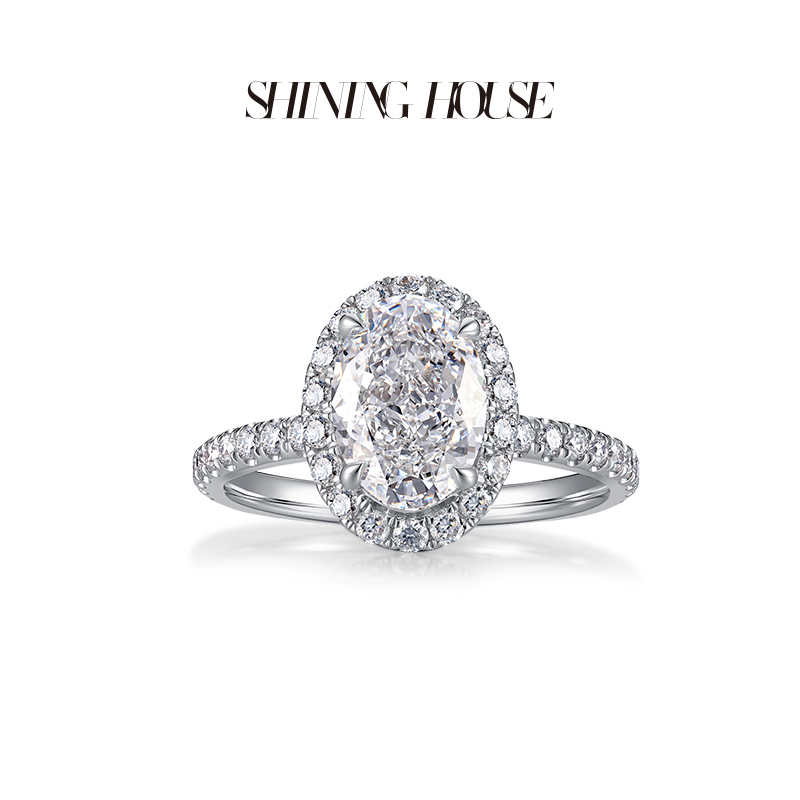 【预售】ShiningHouse[培育] 18k金钻石戒指 椭圆形2克拉钻人工真钻人造钻石K金戒指时尚钻石戒指悦己送礼臻选【此商品不支持7天无理由退货退款】预计3日发货