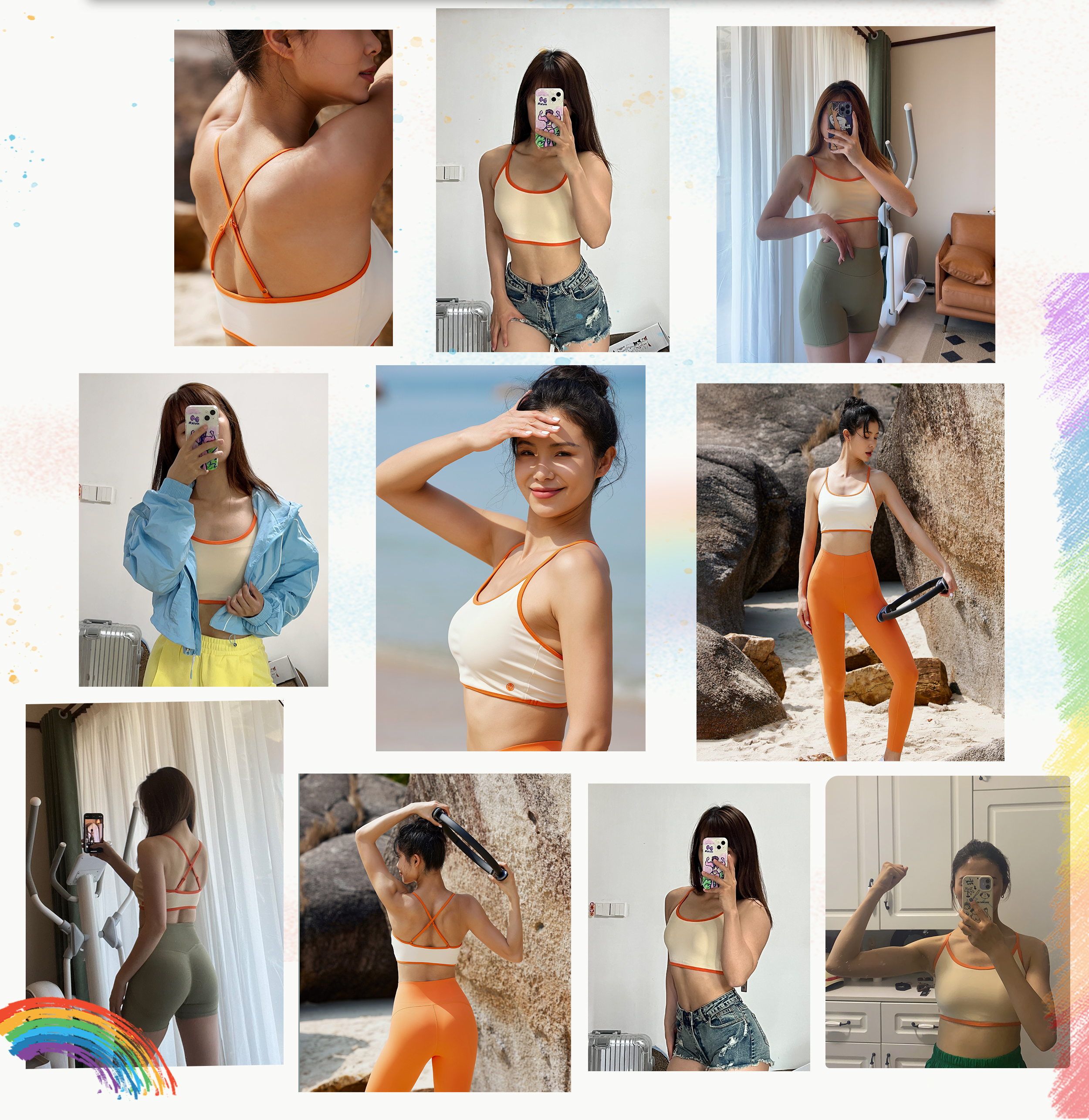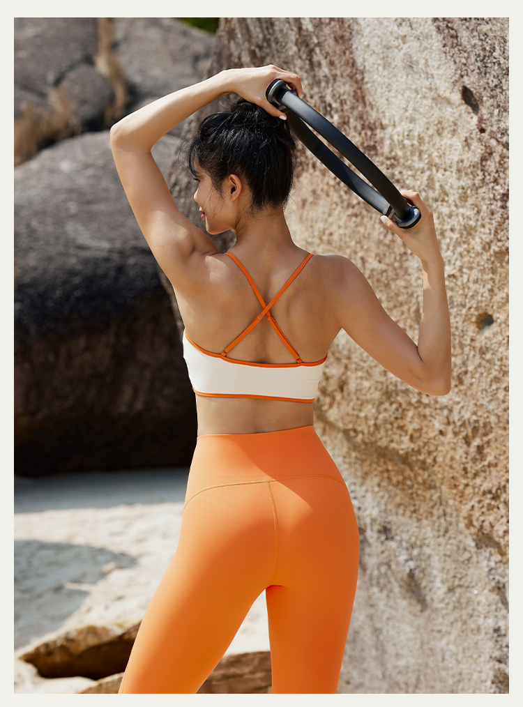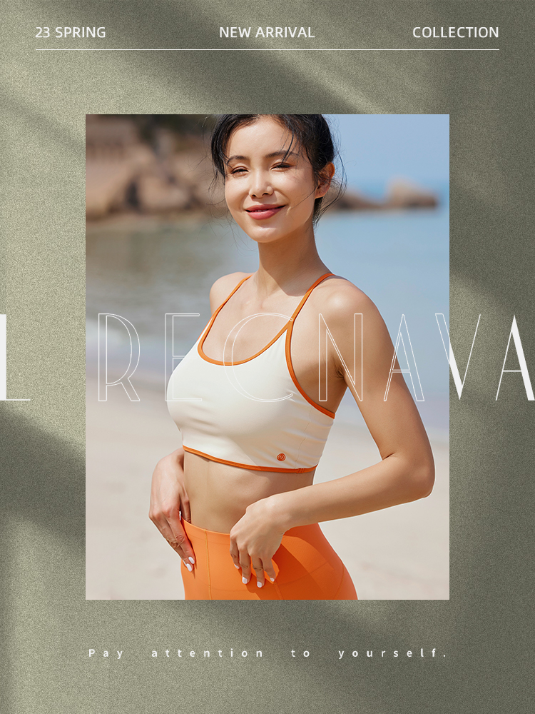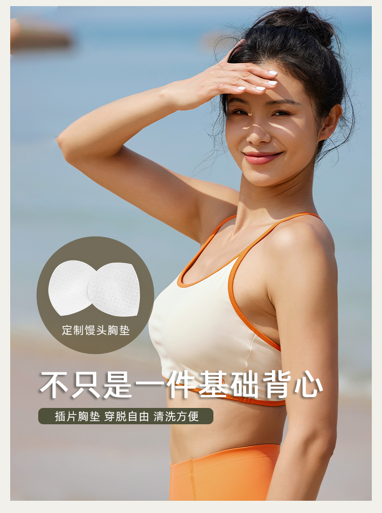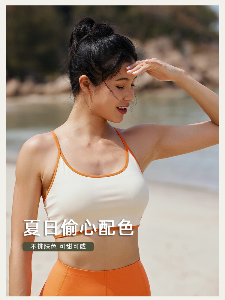 【高弹裸感】中高强度-拼边细肩带带胸垫运动背心胸衣