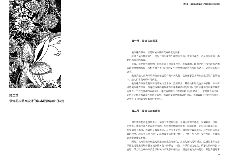 装饰花卉图案设计是染织设计专业学生基础训练的重要内容。装饰花卉图案设计与其他一系列的基础训练课共同构成了完整的专业基础课程,对学生的专业学习有着重要的意义,需要认真学习和钻研,为之后的专业设计打好扎实基础。装饰花卉图案,是装饰艺术中的一个重要组成部分。我国的装饰艺术有着悠久而漫长的历史。本书对我国装饰艺术的起源和发展的各个历史时期所呈现的特点做了简要的阐述;详细介绍了图案设计的基本规律、形式法则以及构思、构图、花卉造型特点、表现技法等,并且图文并茂地对技法表现做了详细说明,便于学生学习理解。
