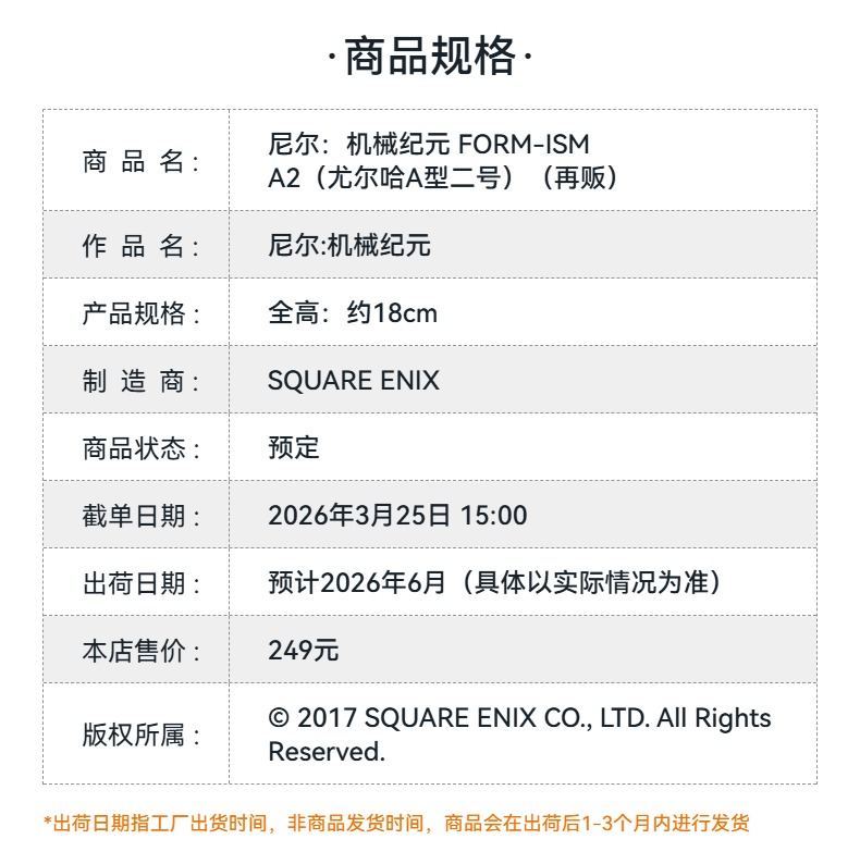 【GSC预售定金】尼尔:机械纪元 FORM-ISM A2(尤尔哈A型二号)