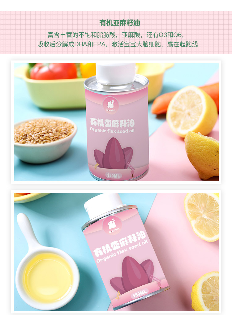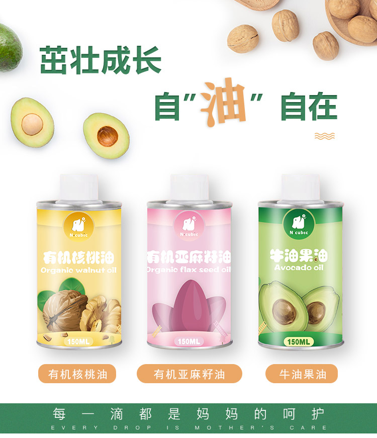 新款Ncubic恩库克宝宝有机核桃DHA亚麻籽牛油果油辅食食用油150ml
