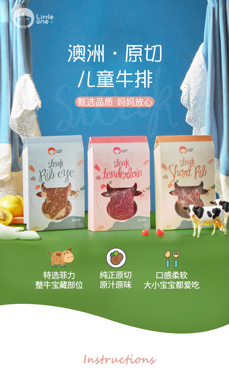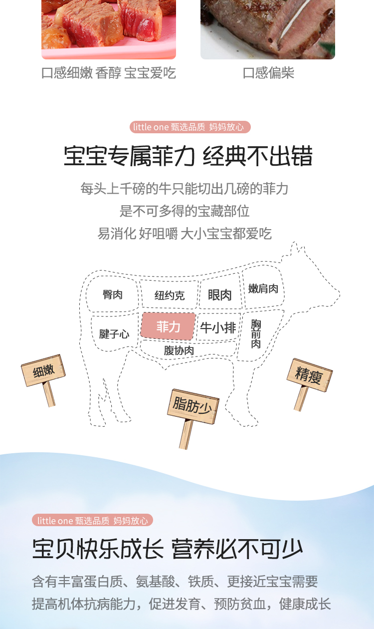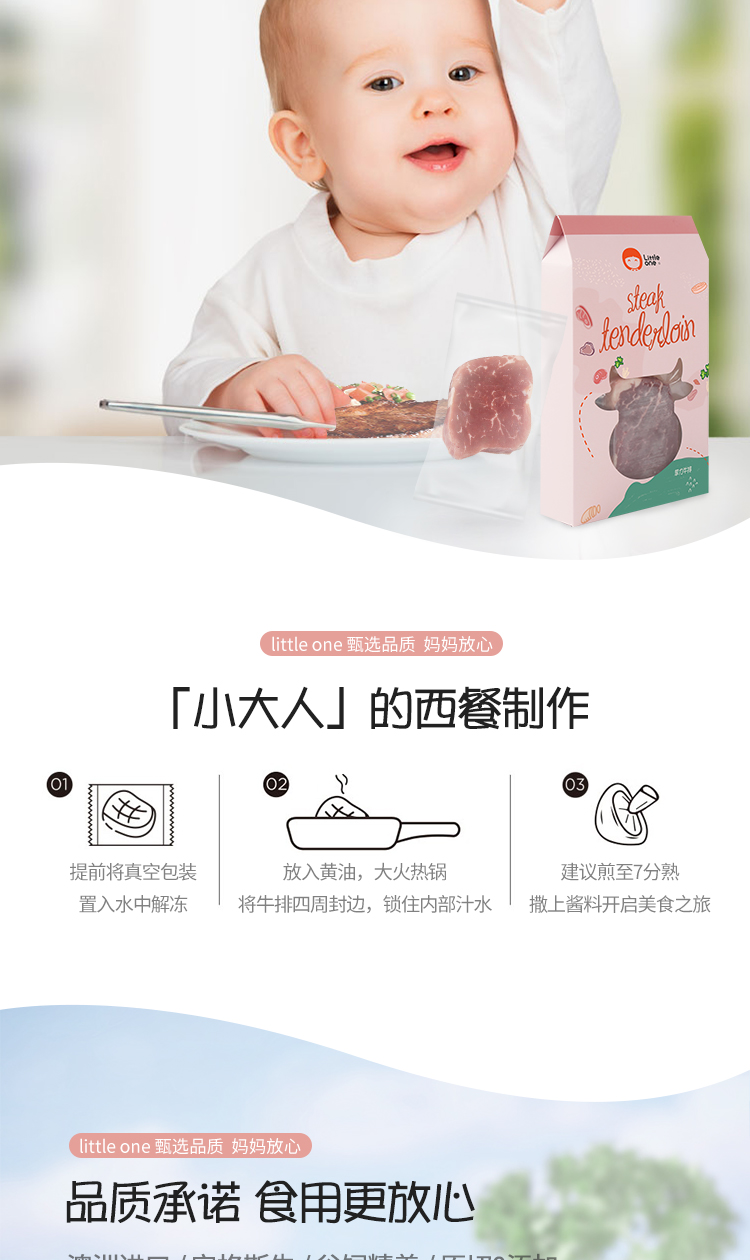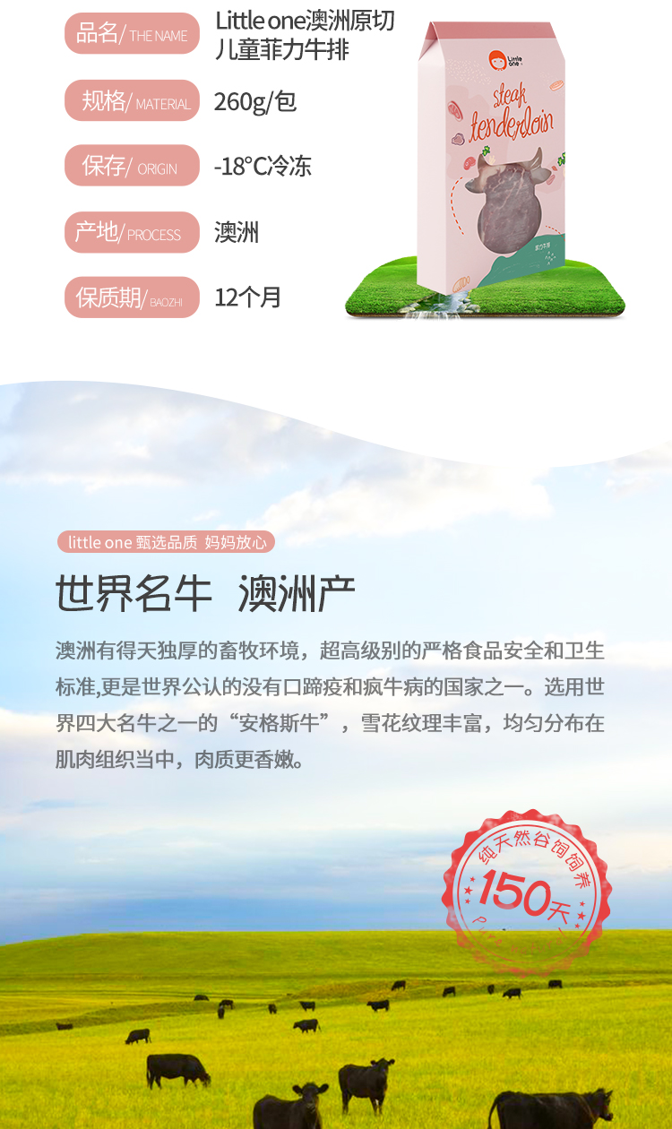 萌小丸澳洲原切安格斯菲力牛排 little one260g宝宝生鲜辅食