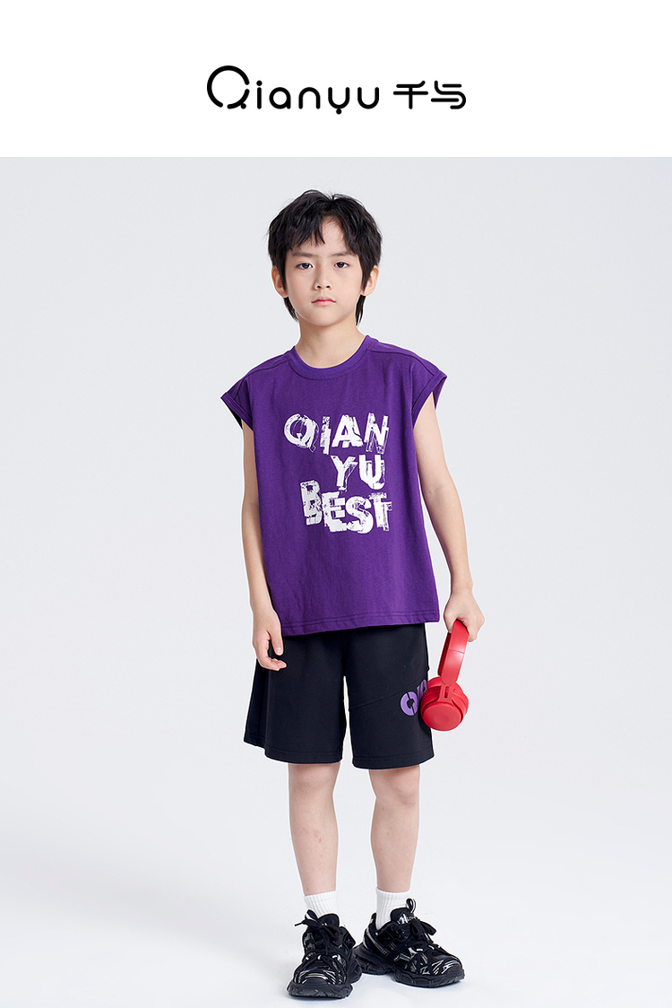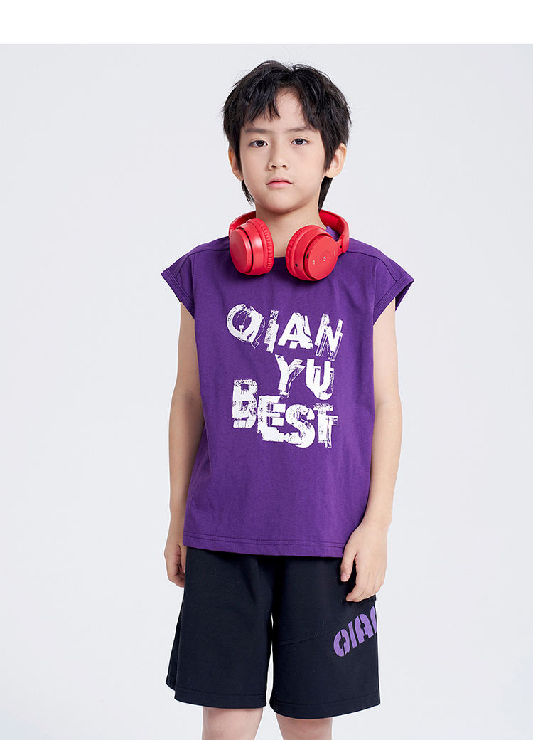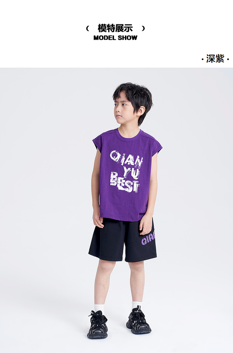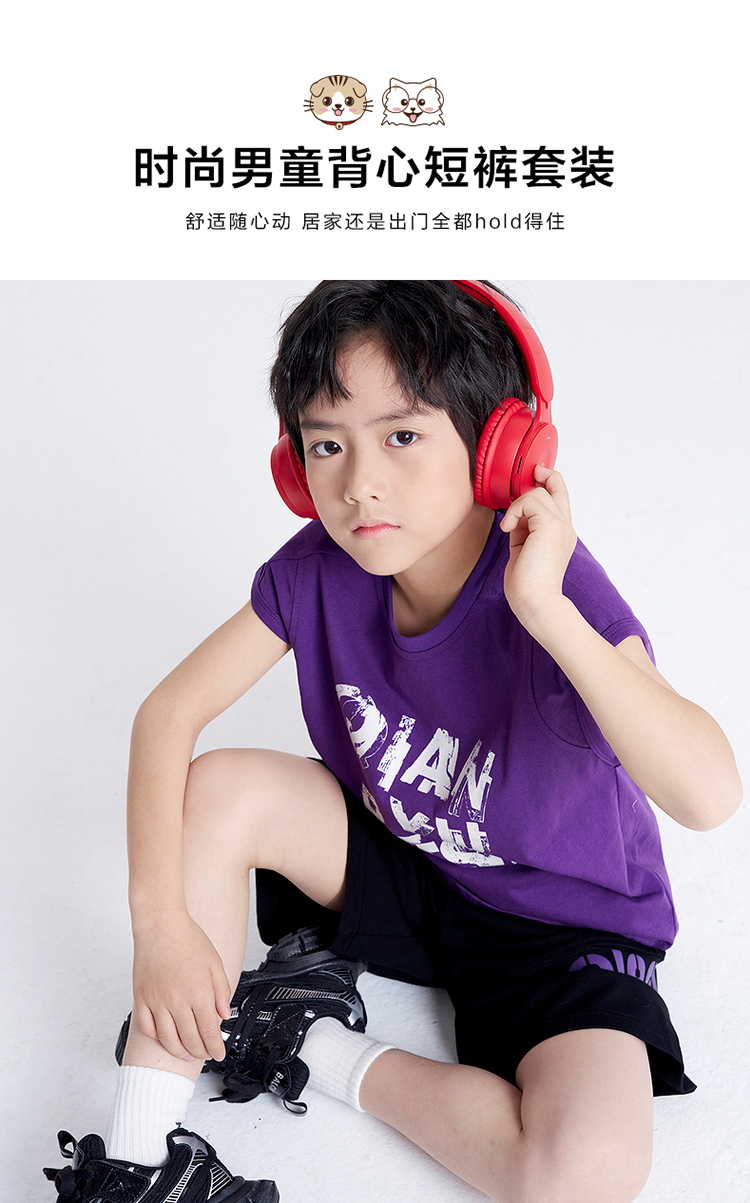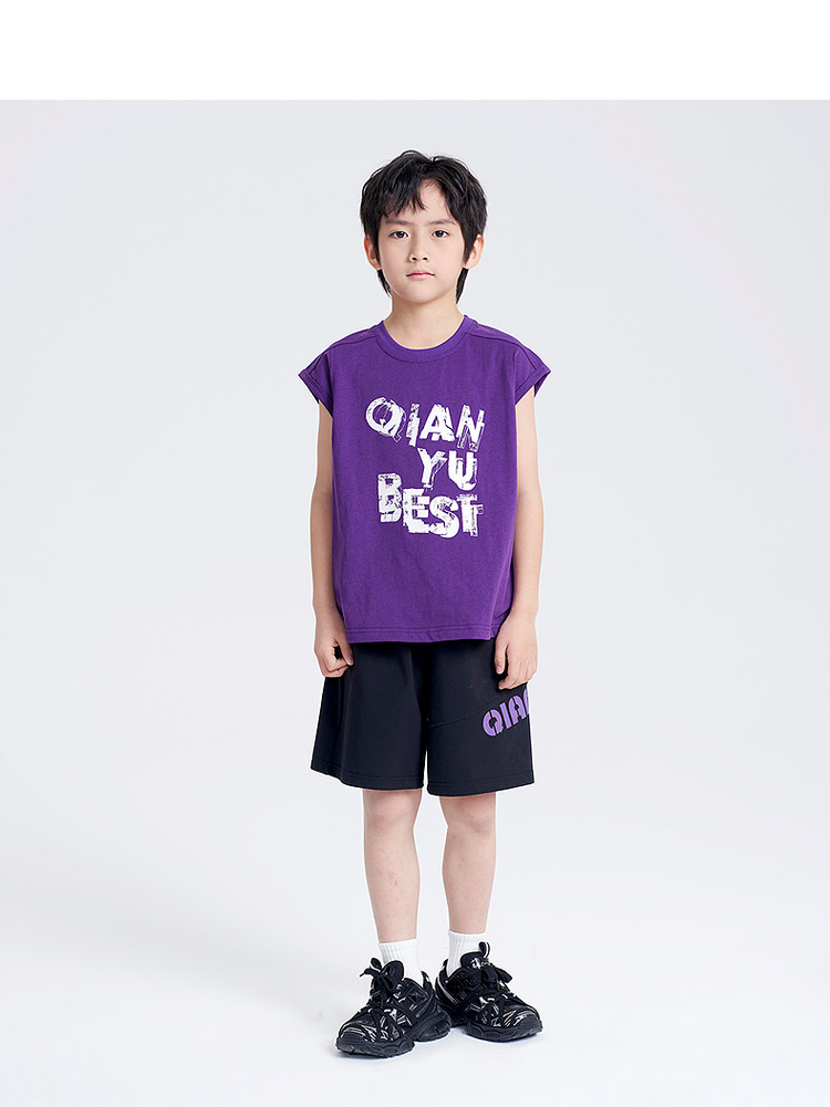 笛莎千与2025夏新款男童时尚男童背心短裤套装
