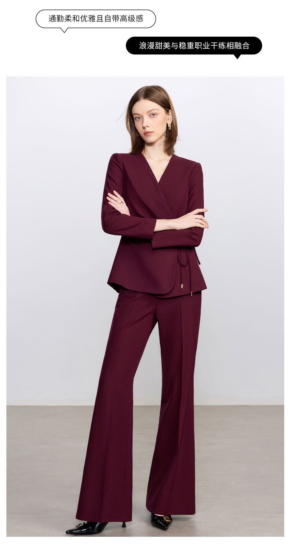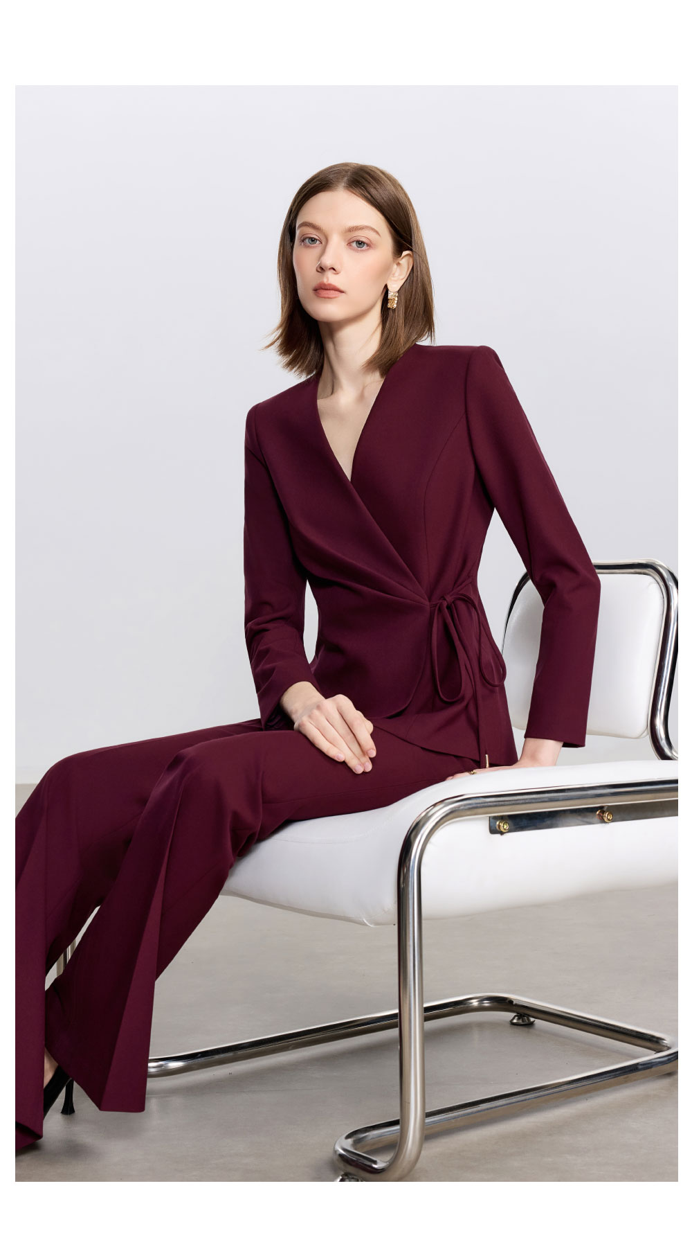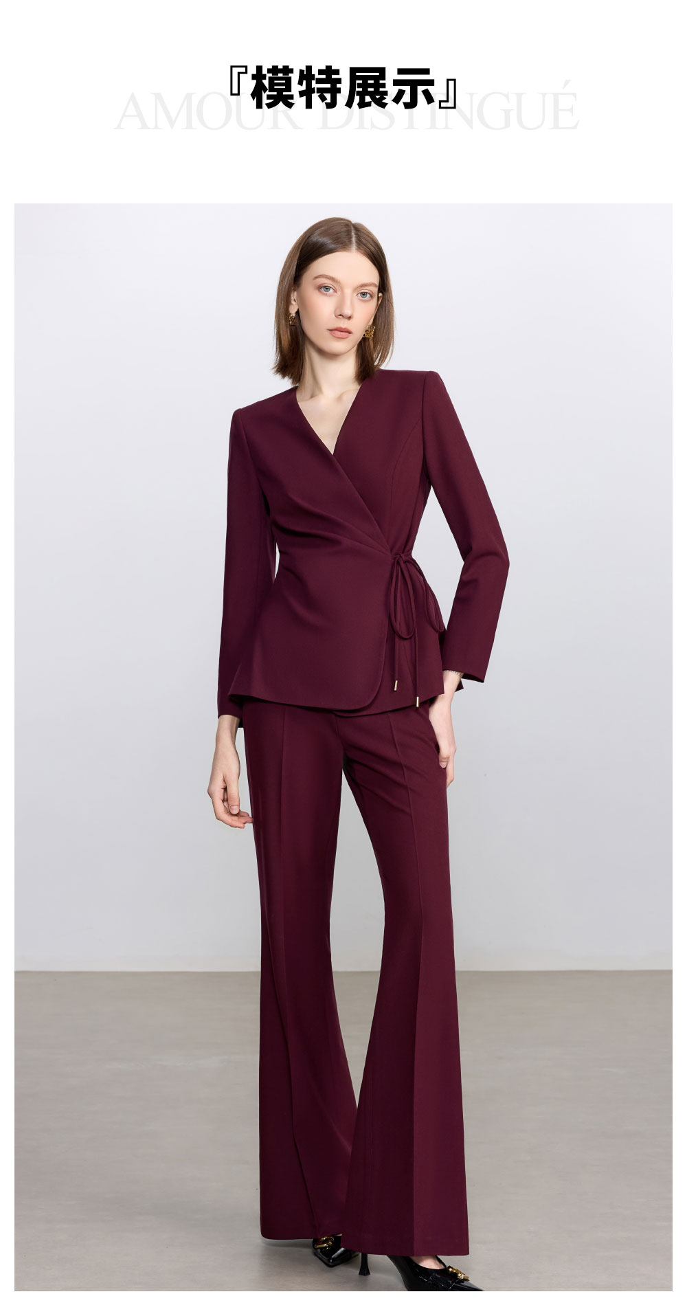IWY/高级感绑带羊毛西装套装女秋冬新款安哥拉红色通勤职业装正装CP2353
