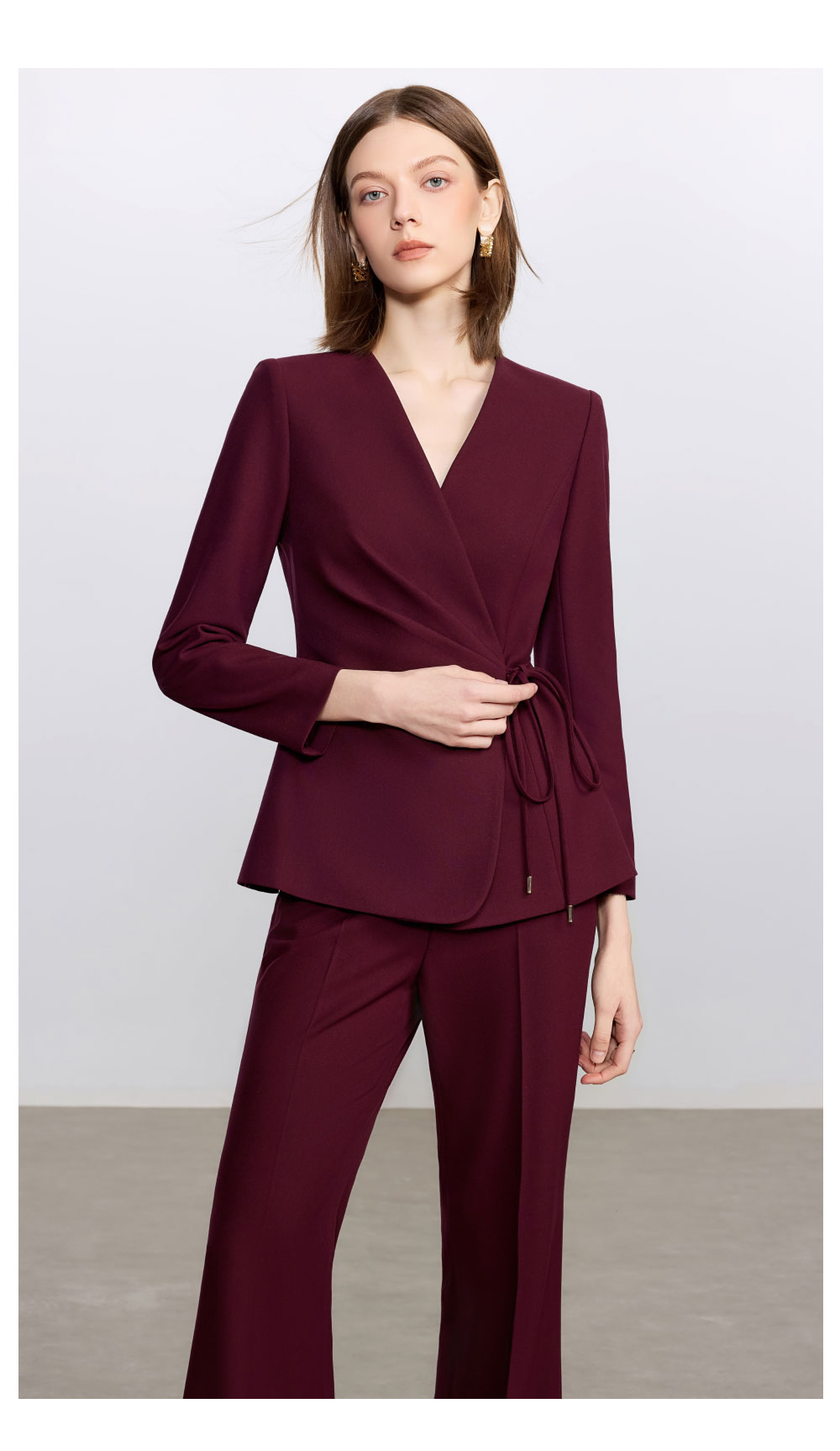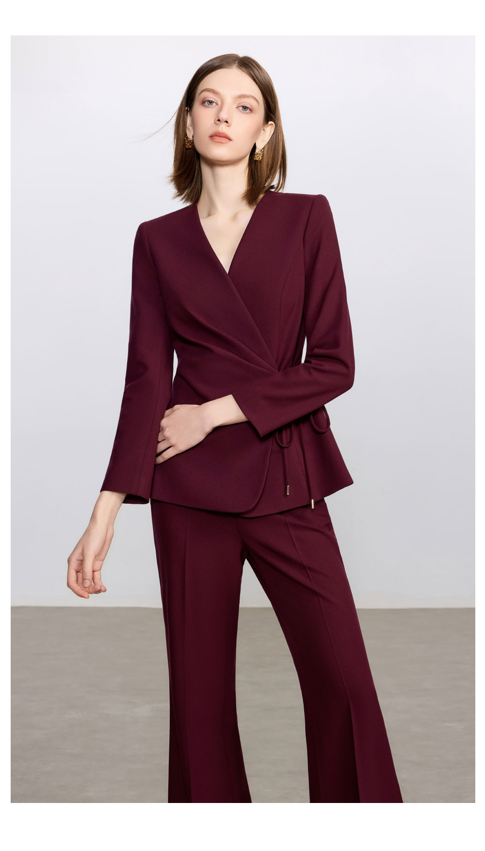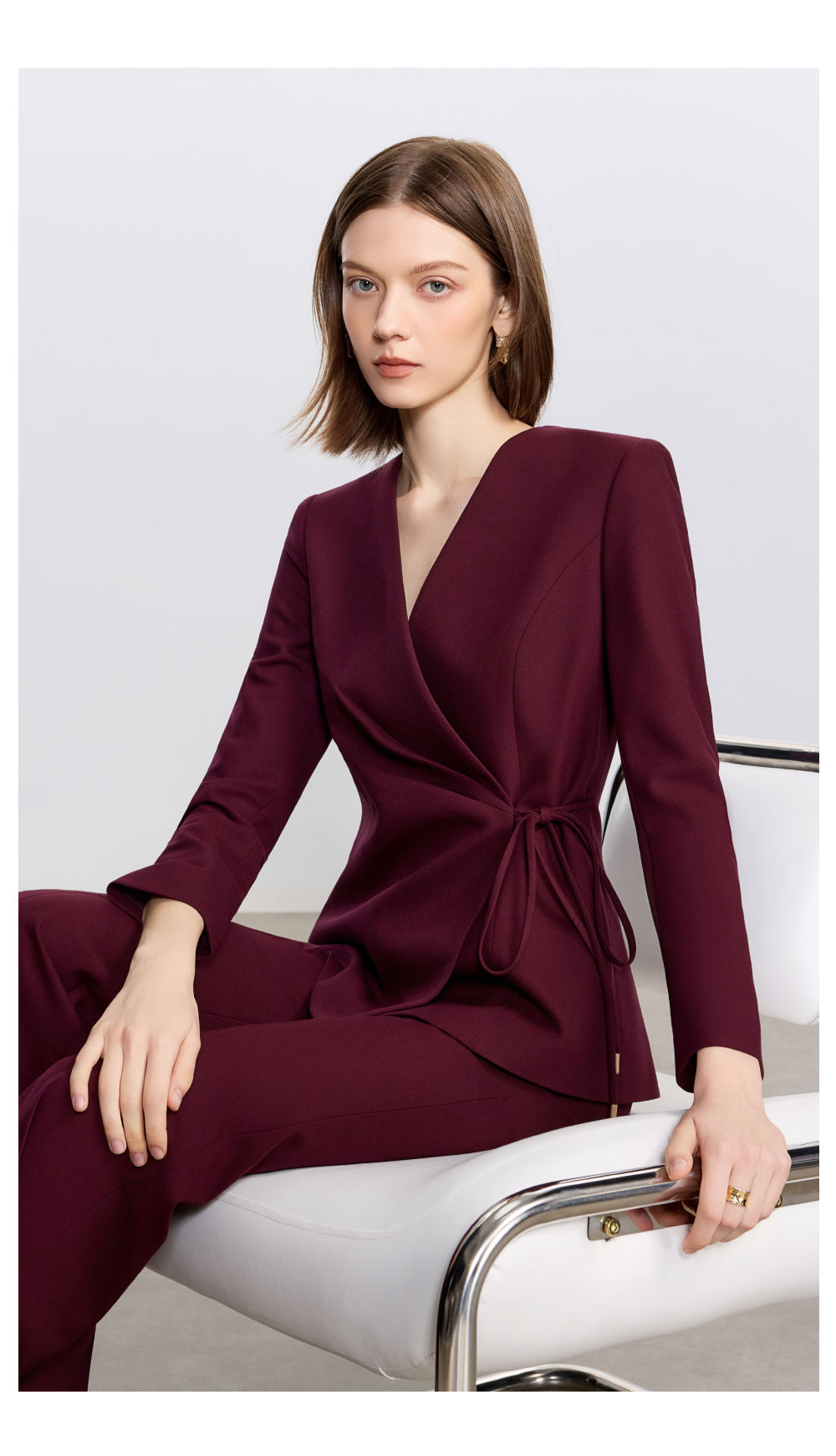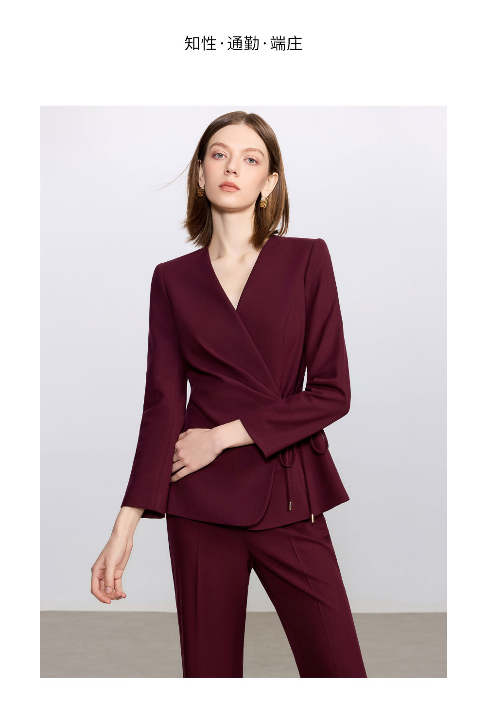 IWY/高级感绑带羊毛西装套装女秋冬新款安哥拉红色通勤职业装正装CP2353
