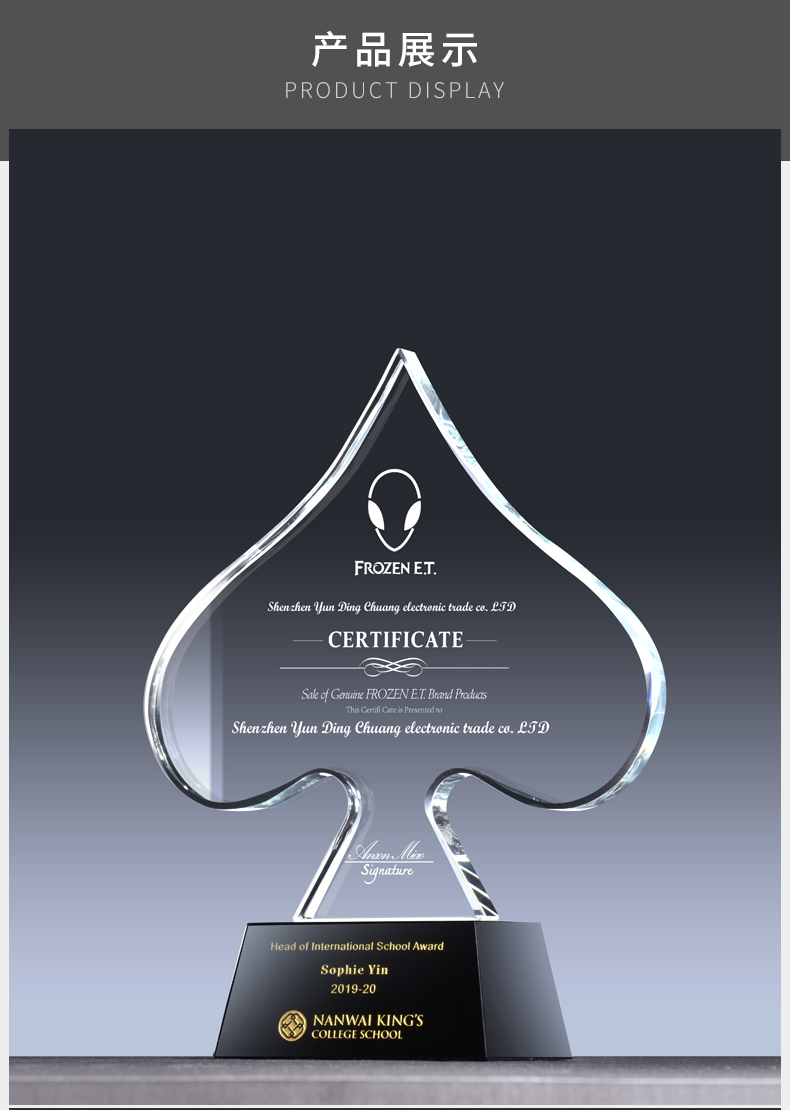 水晶奖杯定制定做高档奖牌创意优秀员工纪念品感谢牌奖座刻字代理