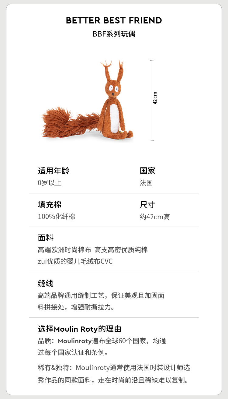 法国 Moulin Roty 玩偶 BBF系列 松松鼠 高34cm -894017 “Better best friend”