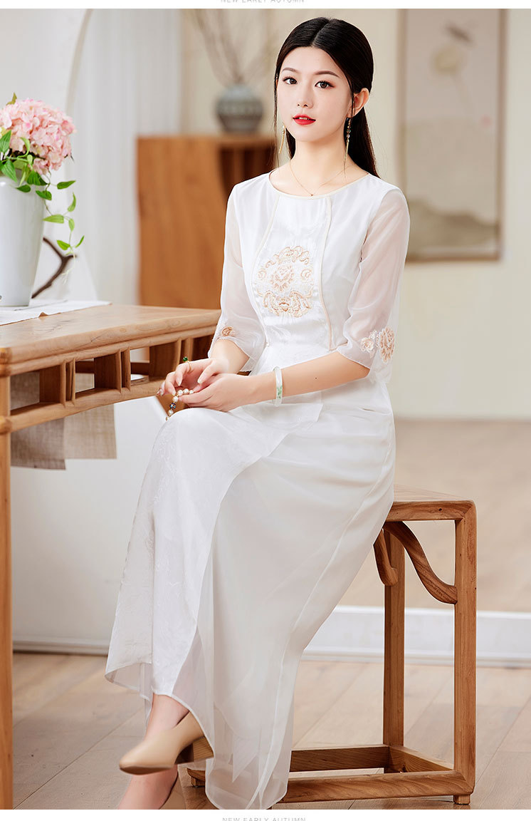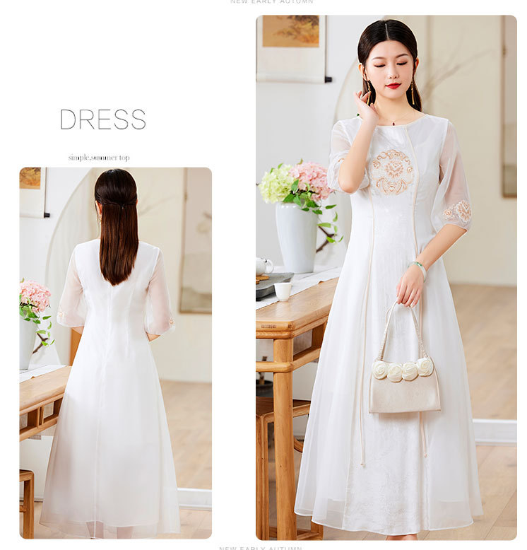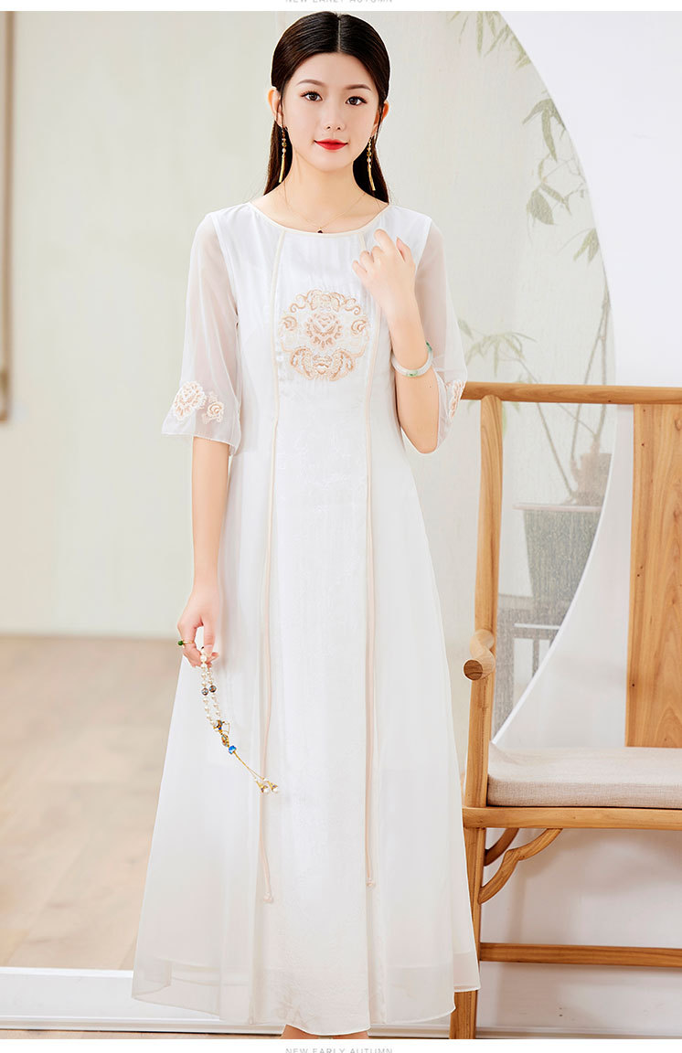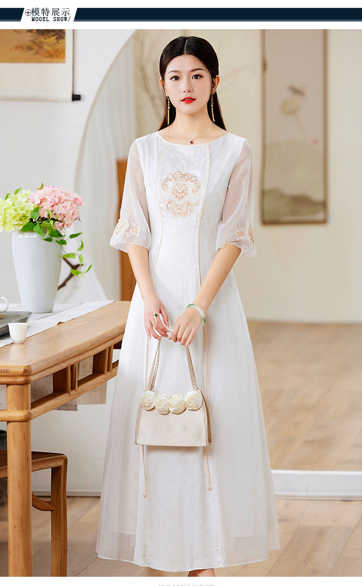 国风复古,圆领拼接日常气质裙刺绣裙改良版旗袍连衣裙OG-9005