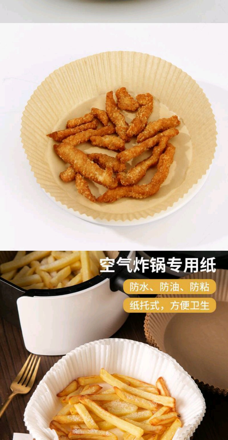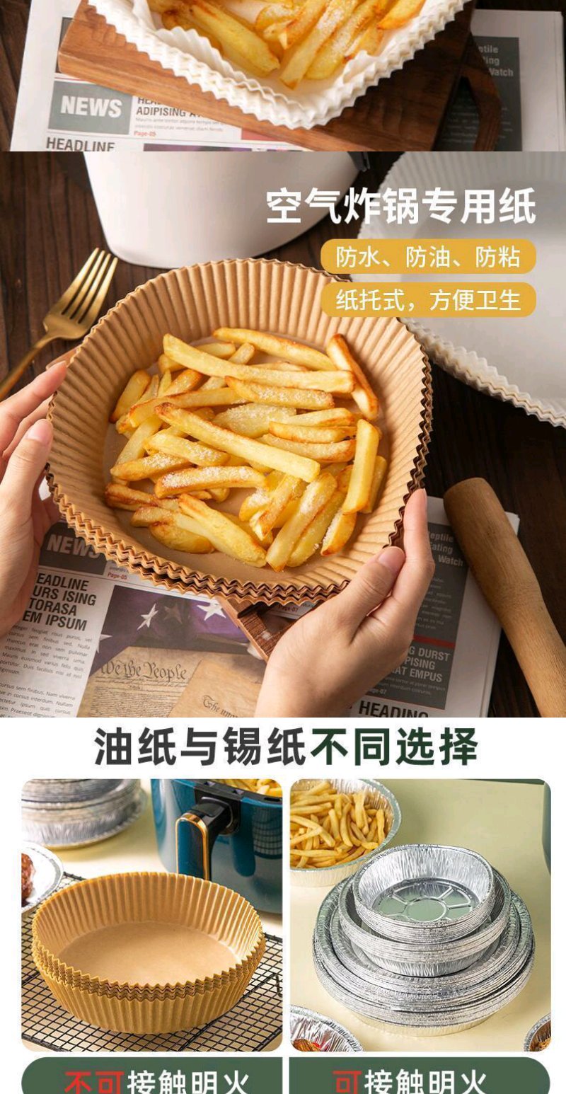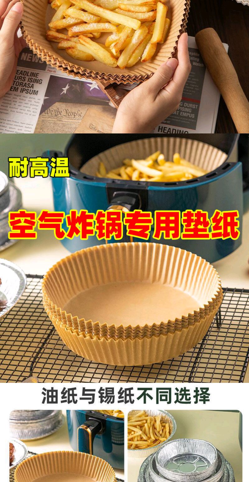 【50只】空气炸锅专用纸硅油纸盘纸托圆形吸油纸食物垫纸烤一次性家用烘焙
