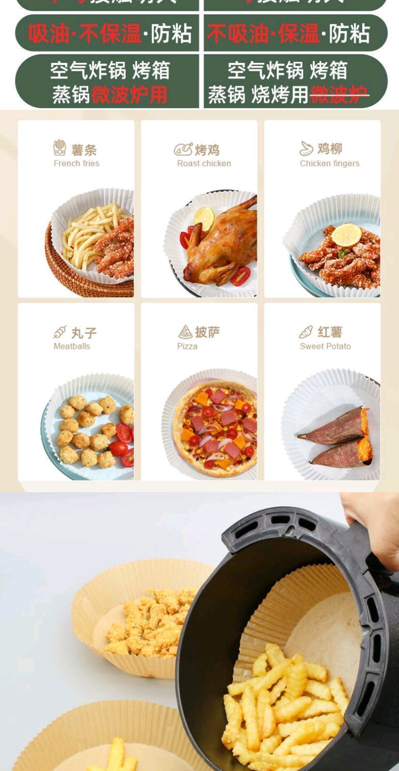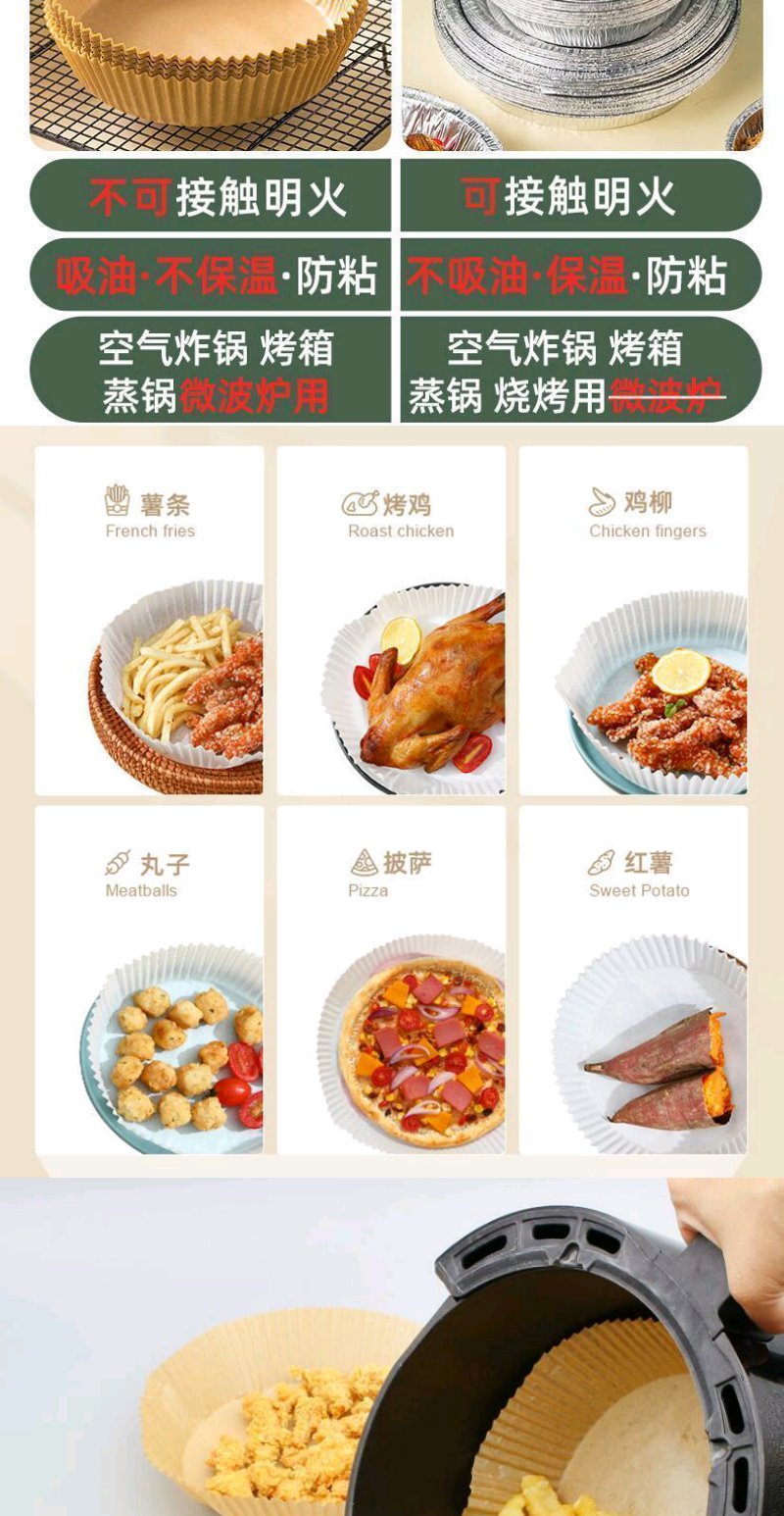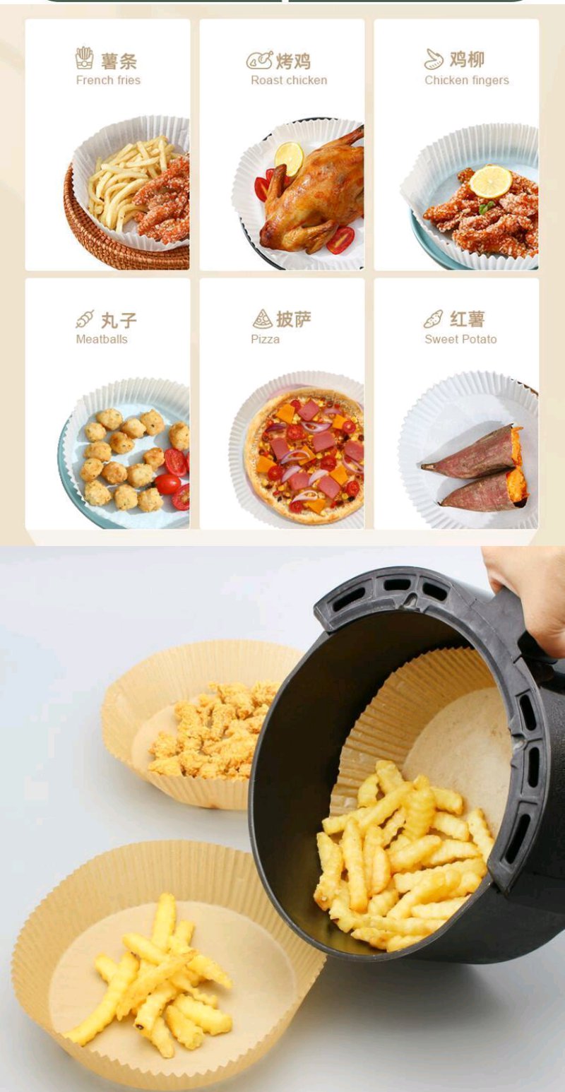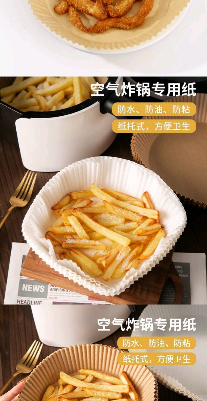 【50只】空气炸锅专用纸硅油纸盘纸托圆形吸油纸食物垫纸烤一次性家用烘焙