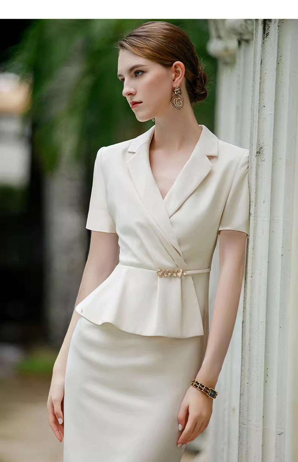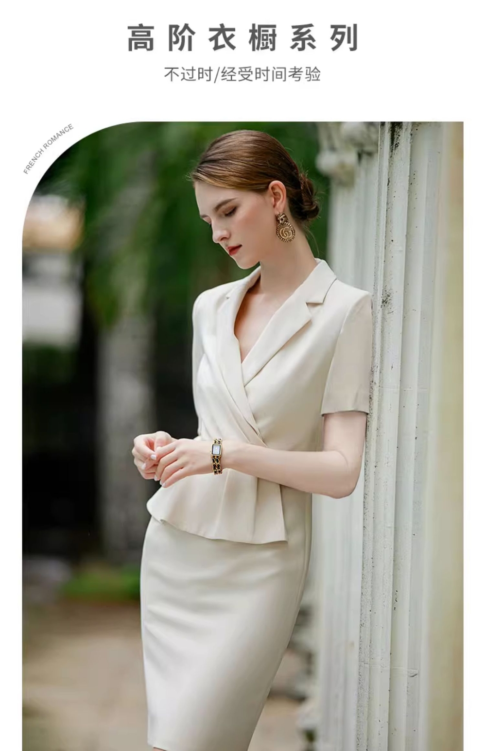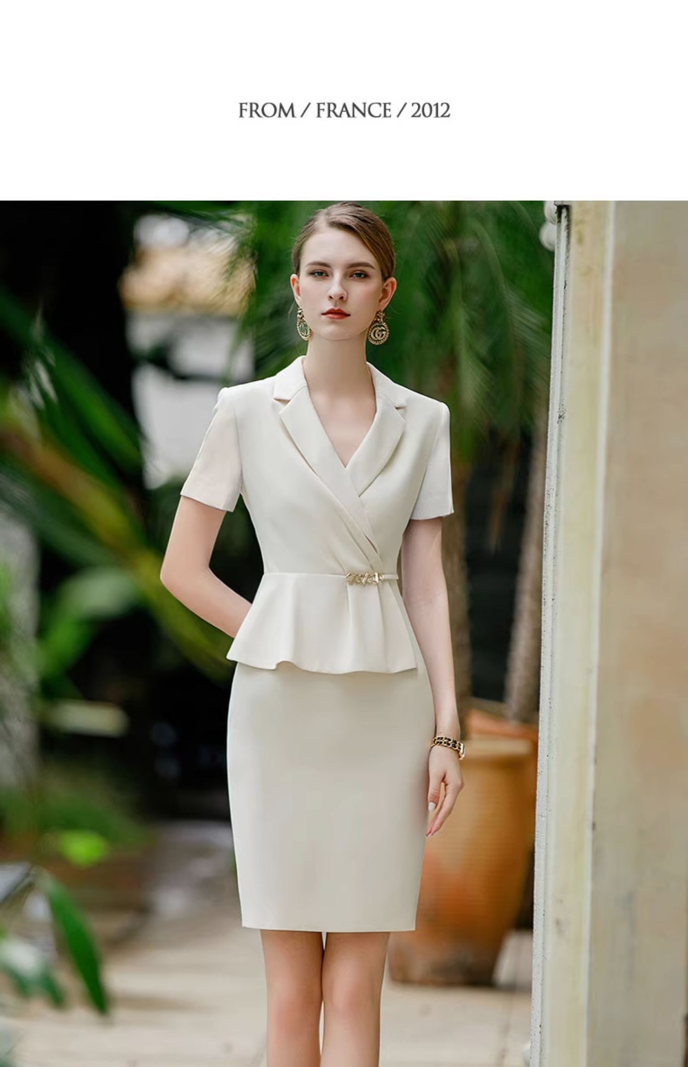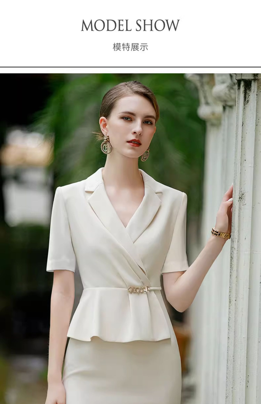 IWY/杏色短袖职业西装连衣裙女假两件薄修身显瘦美容院气质工作服Q944