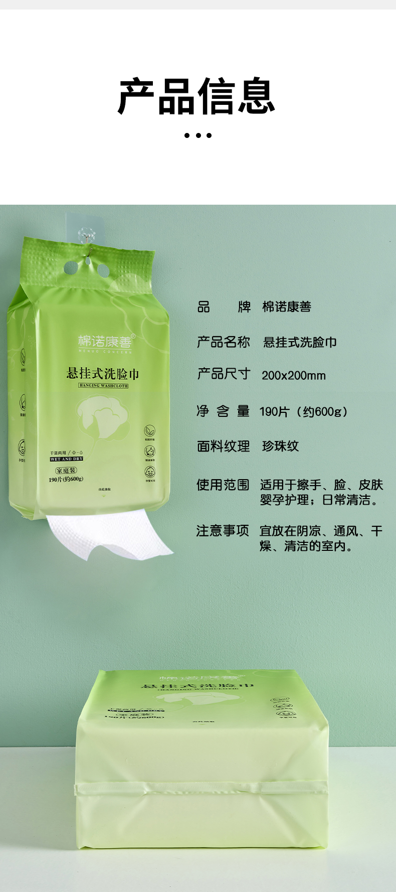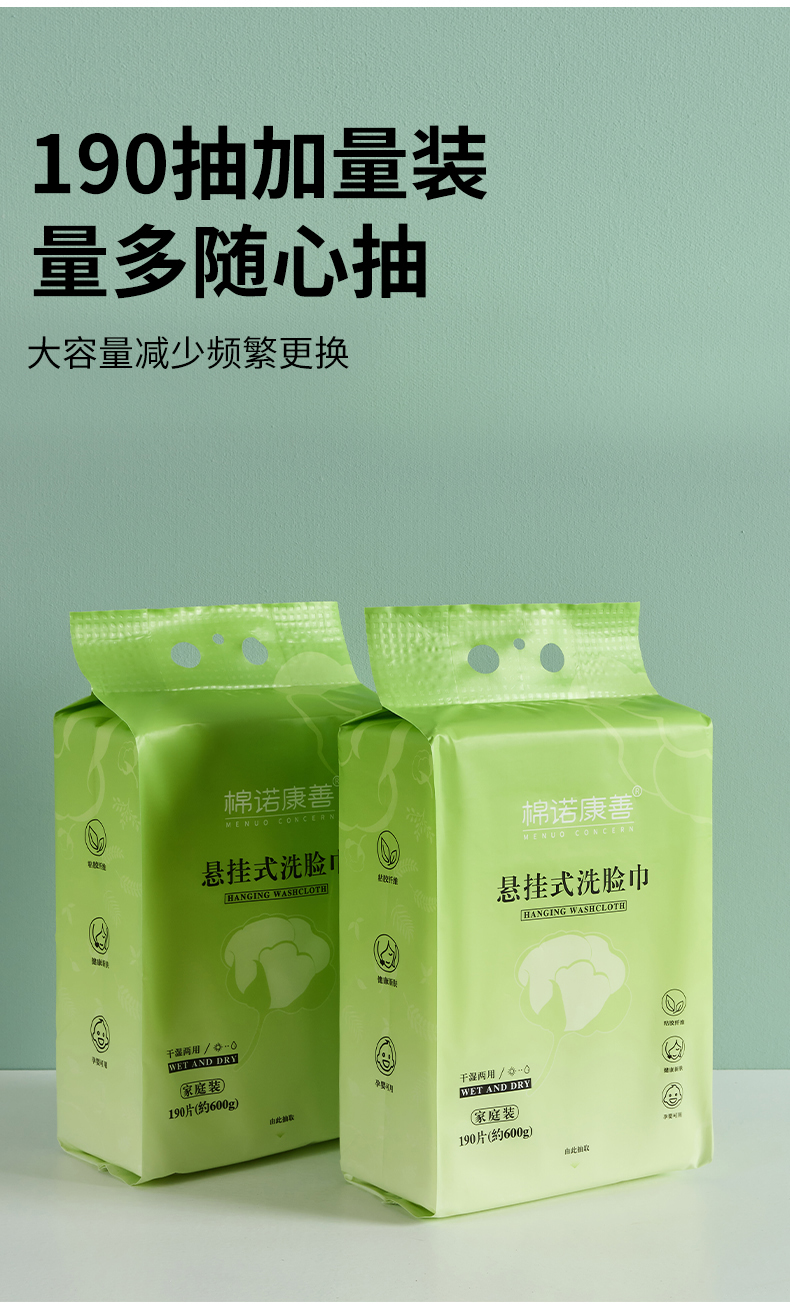 【家庭装2包=380抽】悬挂抽取式两用洁面巾 加厚款80g布洗脸巾