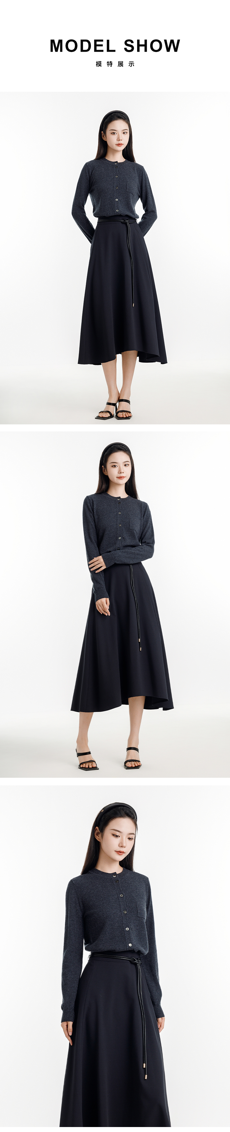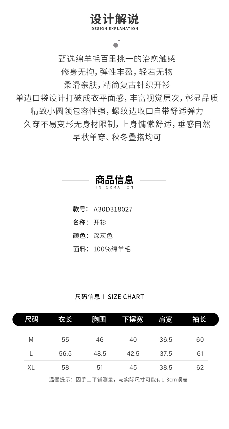 【商场同款】阿菁娜2024秋季新款绵羊毛精致圆领开衫A30D318027