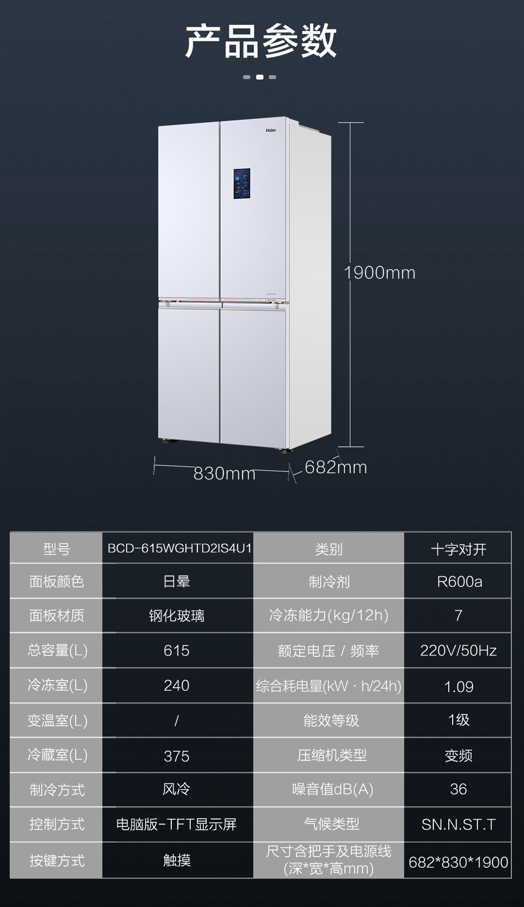 海尔(Haier)冰箱 BCD-615WGHTD2IS4U1