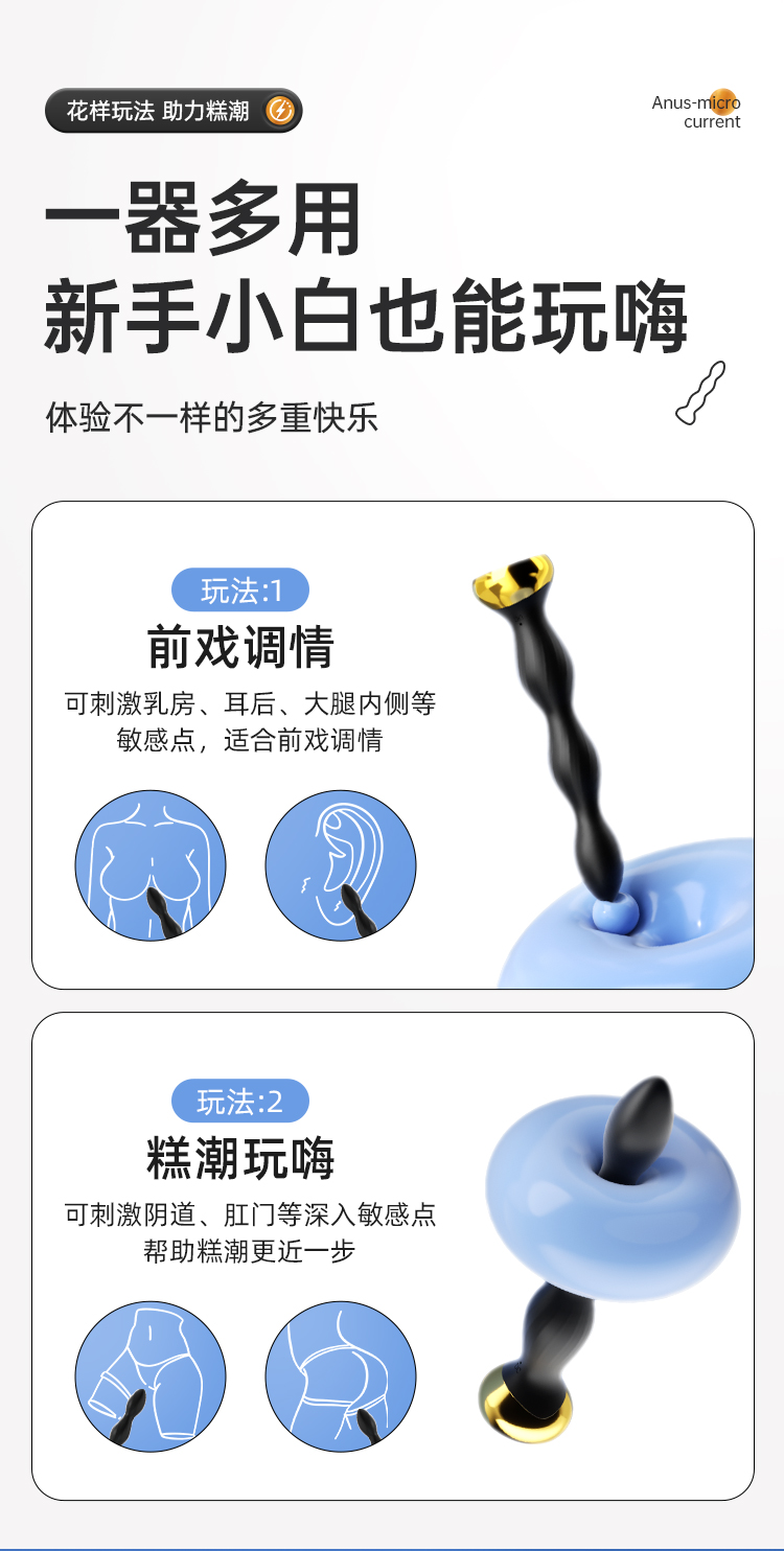 谜姬 微电流后庭塞电击酥麻强震拉珠棒电击肛门塞新手开发扩肛器sm情趣用
