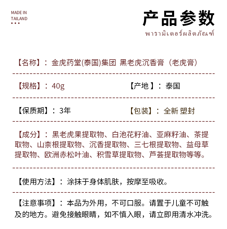 ⁵泰国溯源:298元2大1小【黑虎沉香老虎膏 】哪里不舒服就涂抹哪里 腰酸腿疼 YY05-QTT-SFL