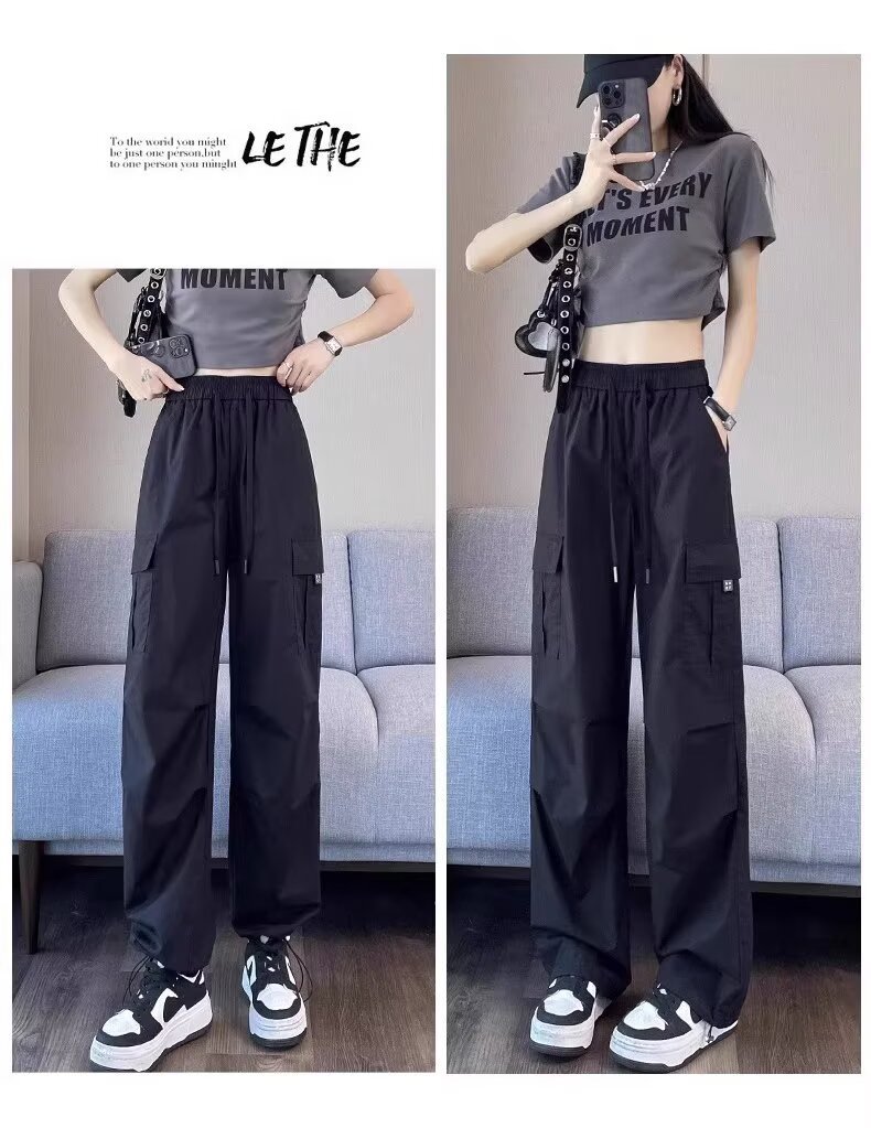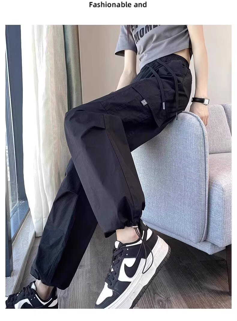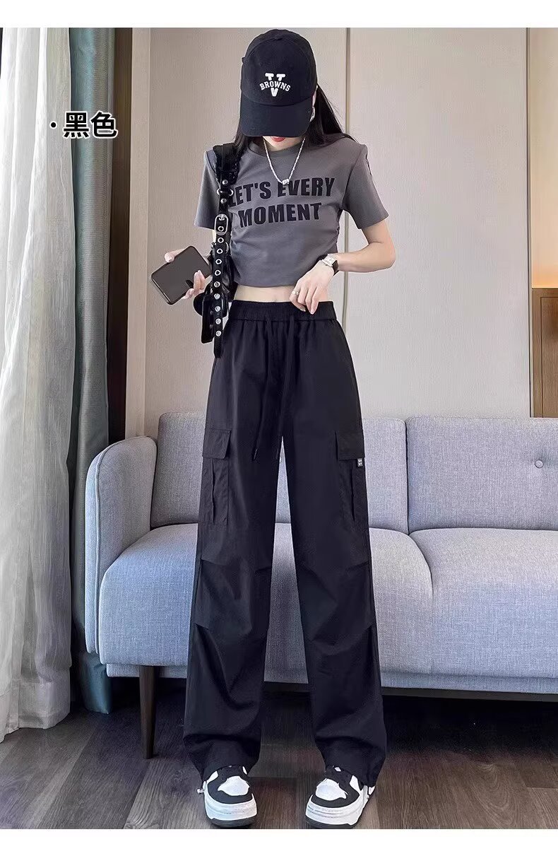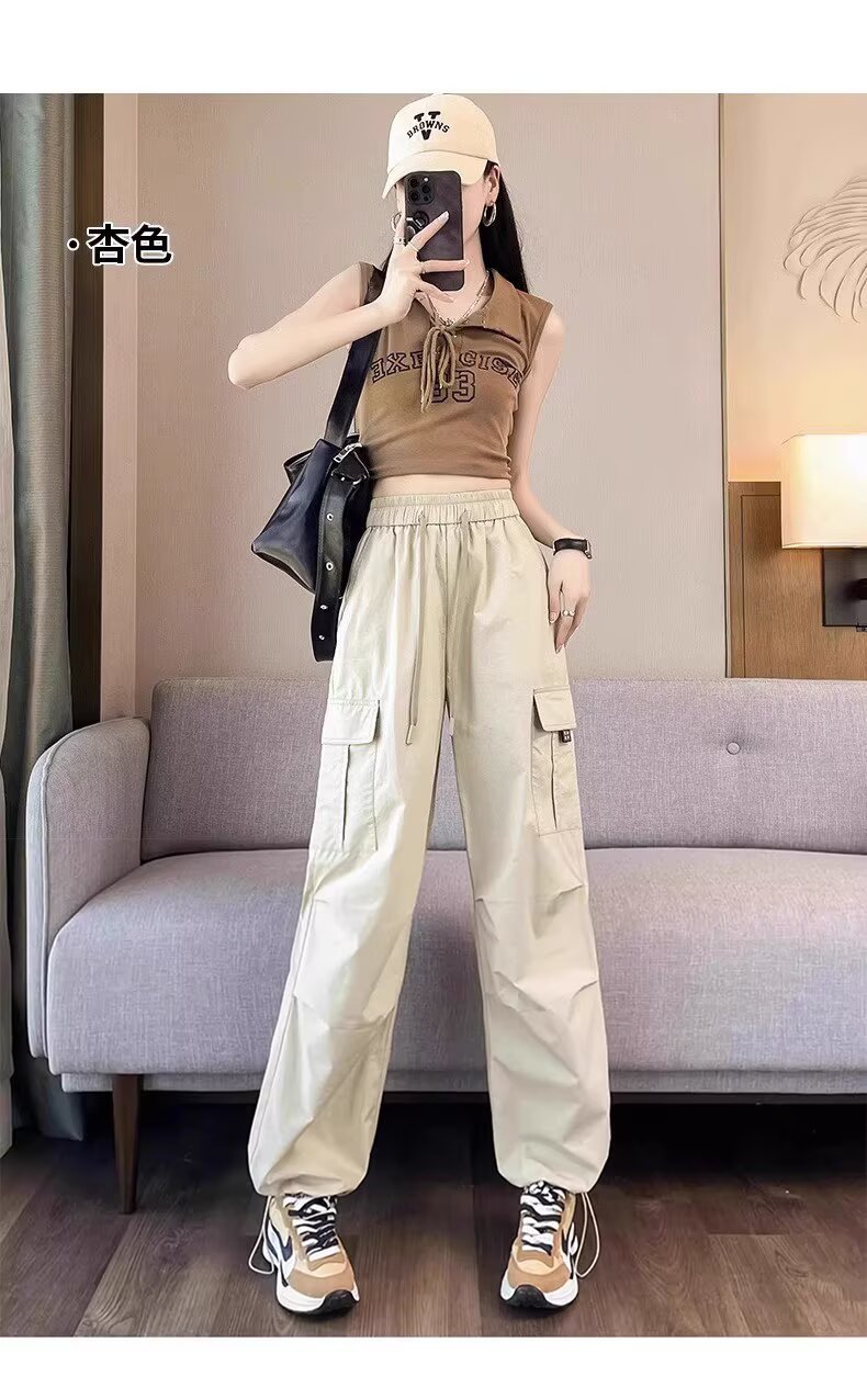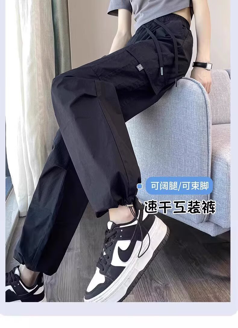 【可阔腿/可束脚❗速干工装裤】美式工装裤女春夏季新款高腰显瘦小个子休闲直筒束脚运动裤。ri