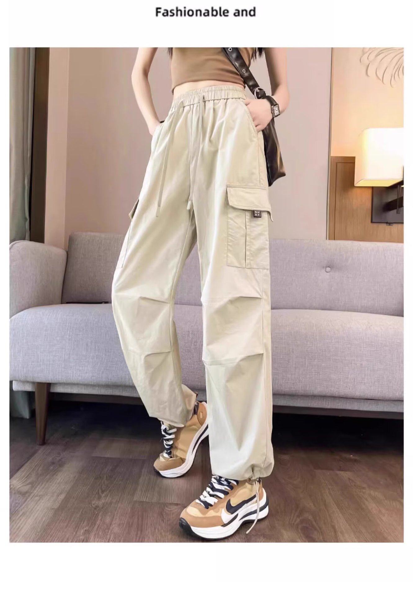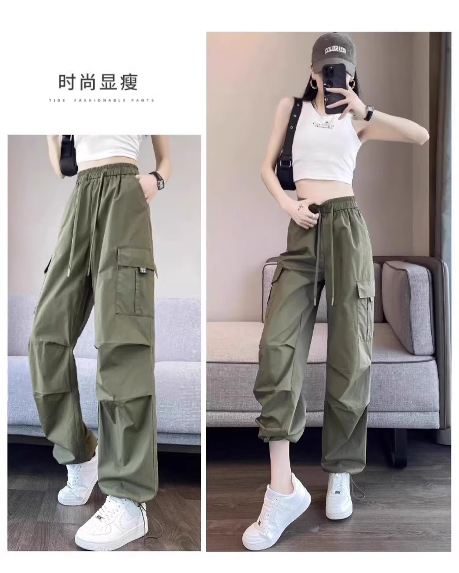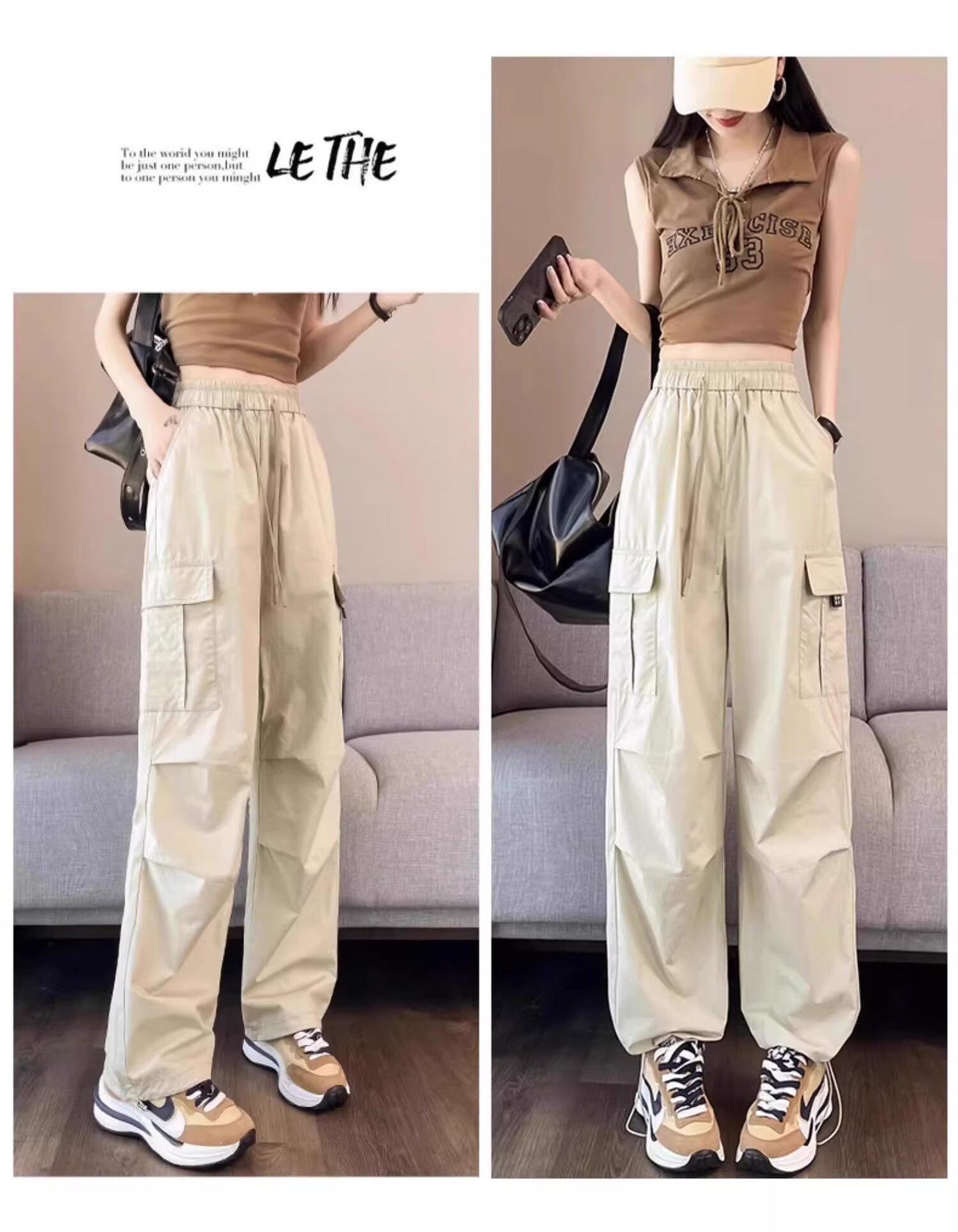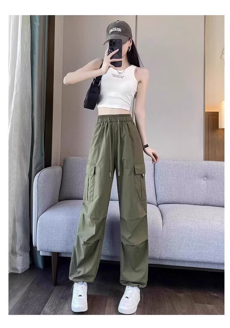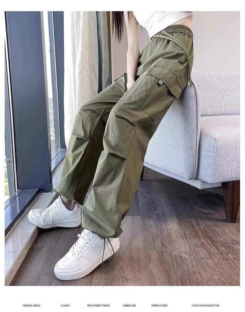 【可阔腿/可束脚❗速干工装裤】美式工装裤女春夏季新款高腰显瘦小个子休闲直筒束脚运动裤。ri
