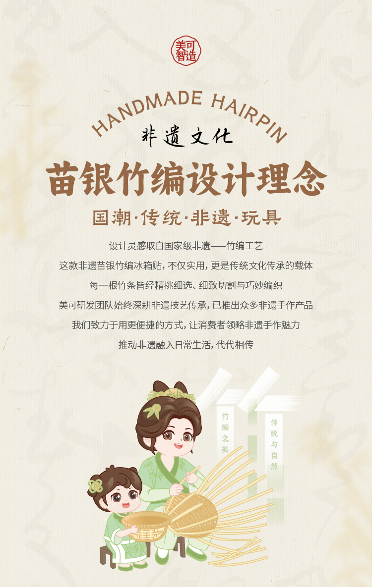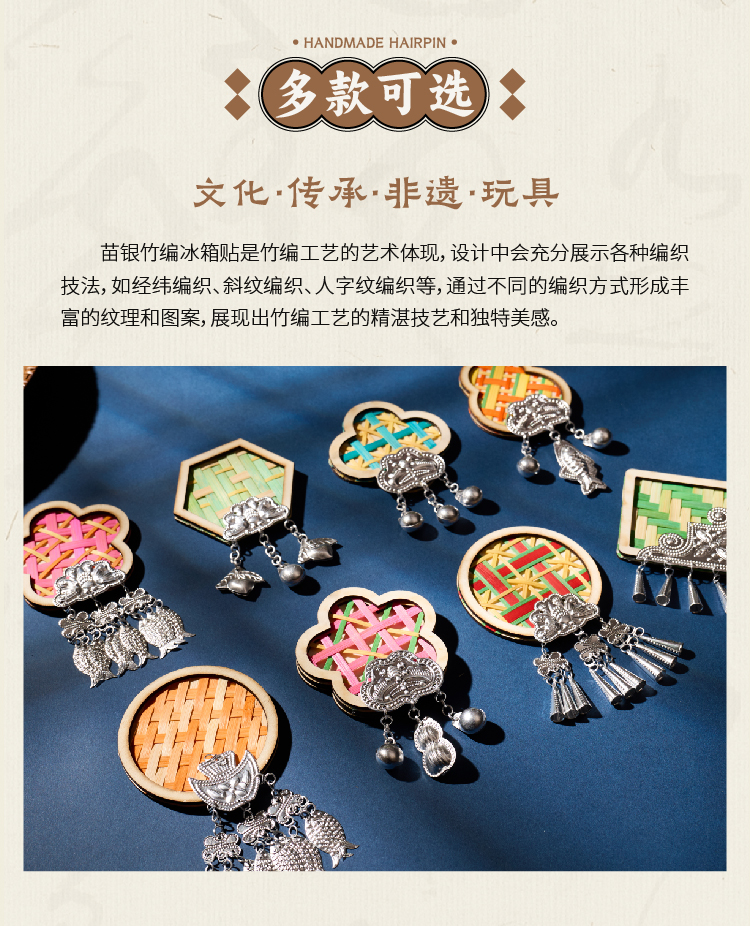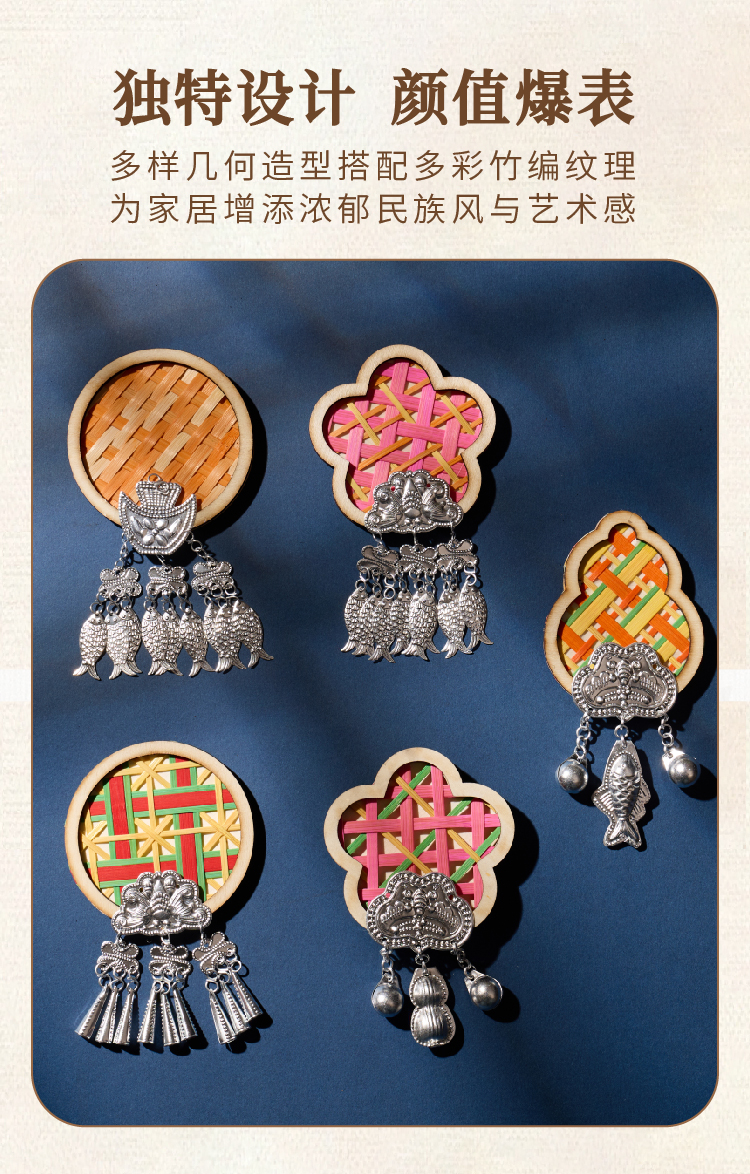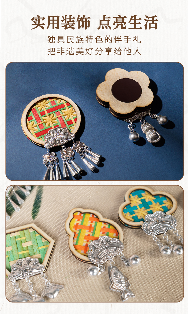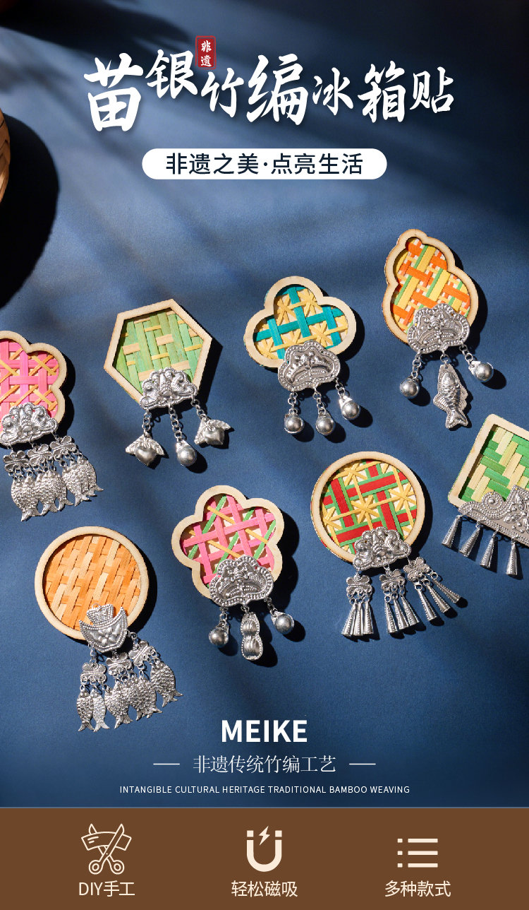 苗银竹编冰箱贴手工diy儿童制作材料包沙龙团建暖场活动非遗磁贴