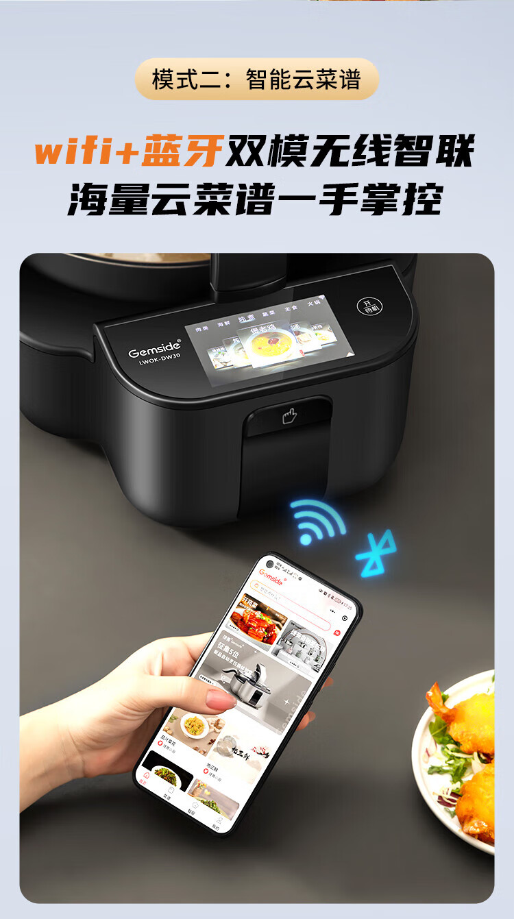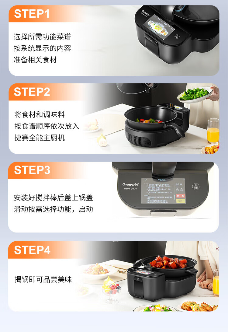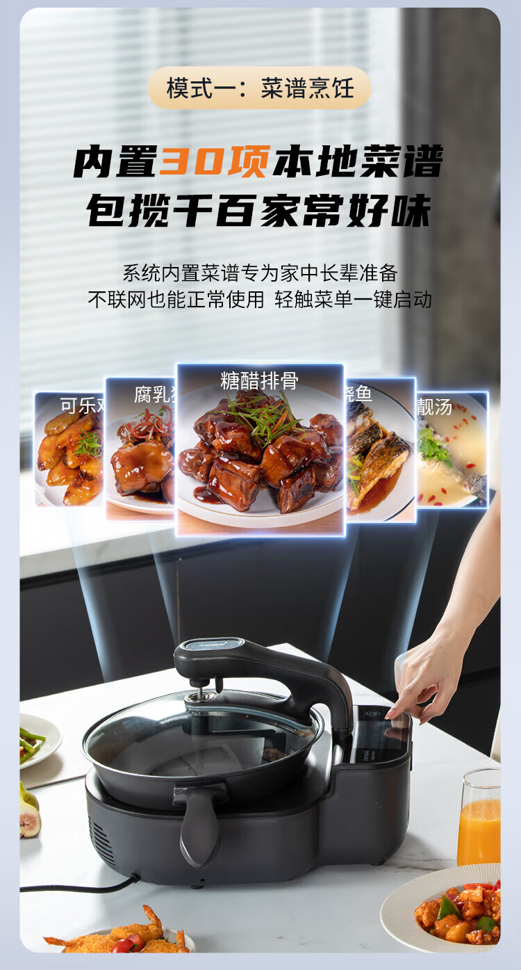 捷赛全自动智能炒菜机 多功能智能烹饪锅家用自动炒菜机器人无油烟不糊锅可定时预约LWOK-DW30