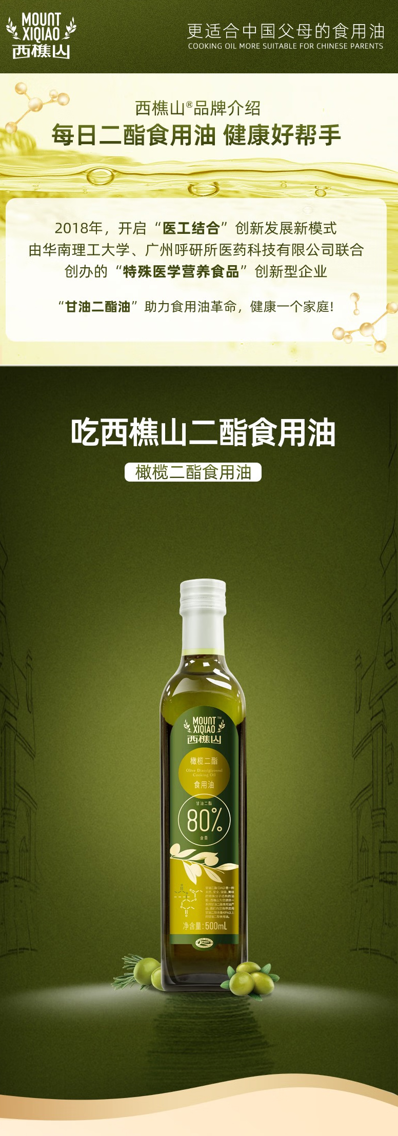 【月满家和】西樵山橄榄二酯食用油 500ml/瓶 (二脂油含量80%)(包邮直发)(ZB)