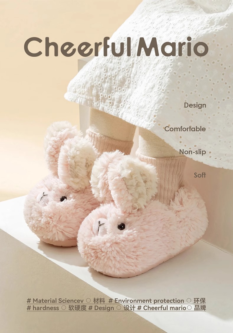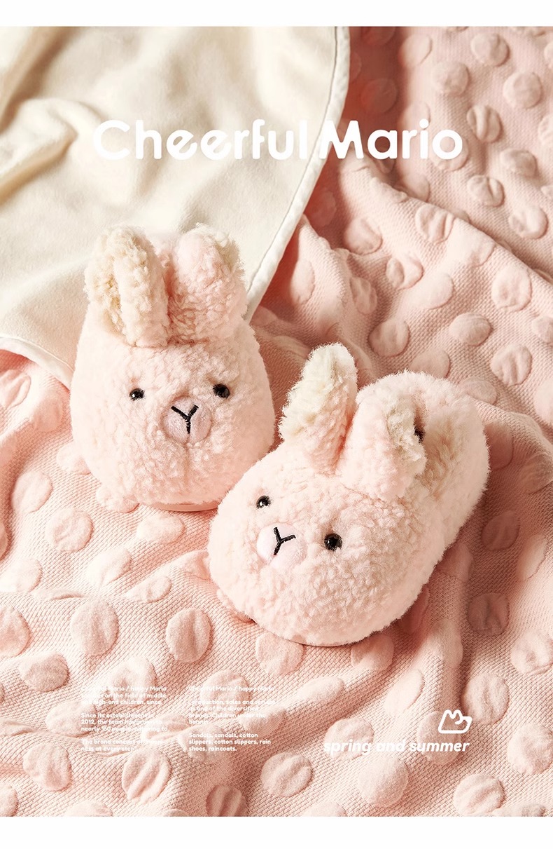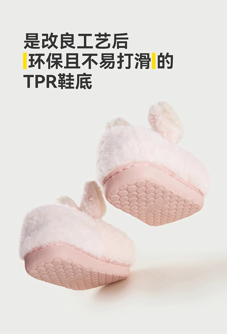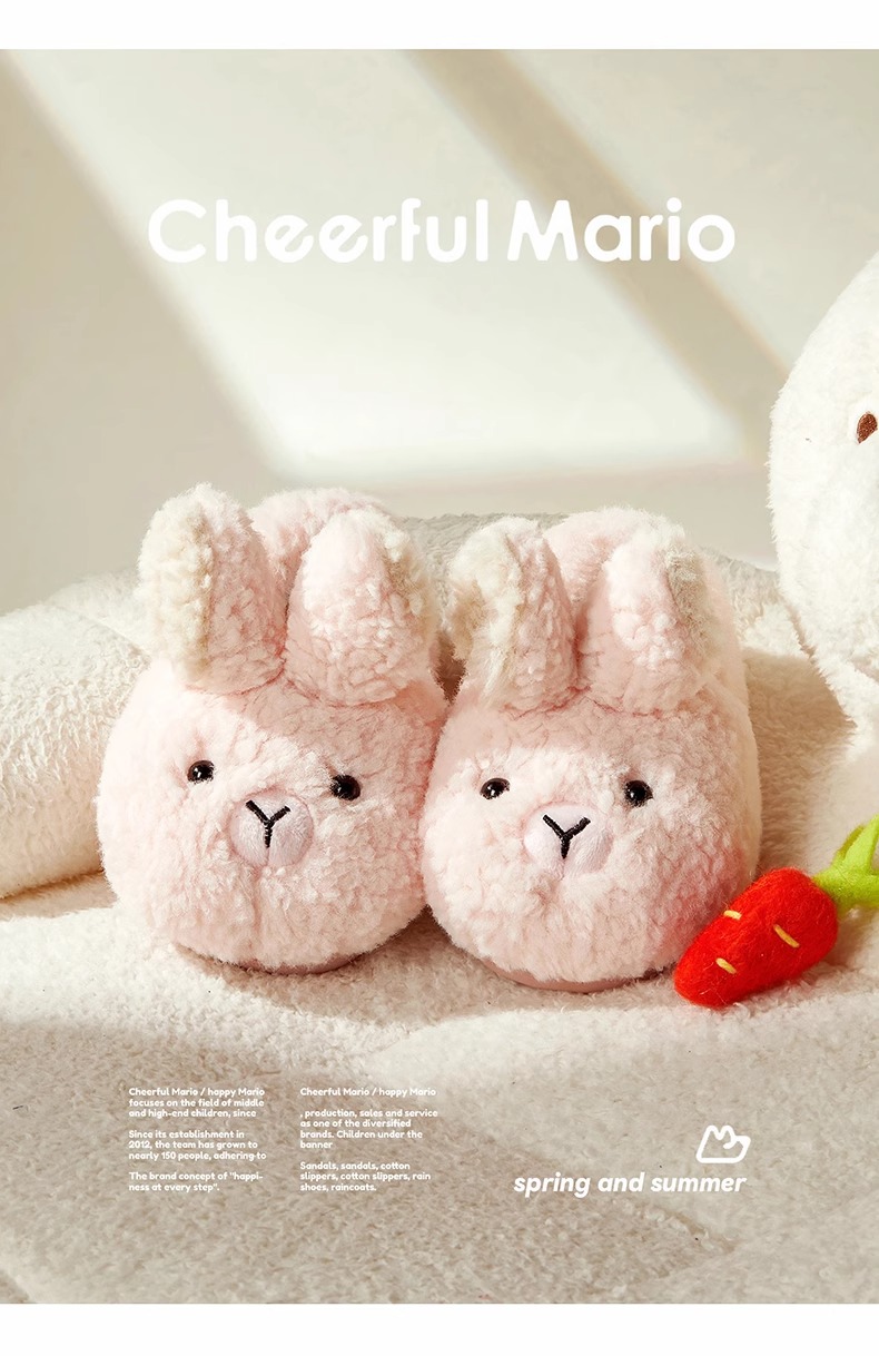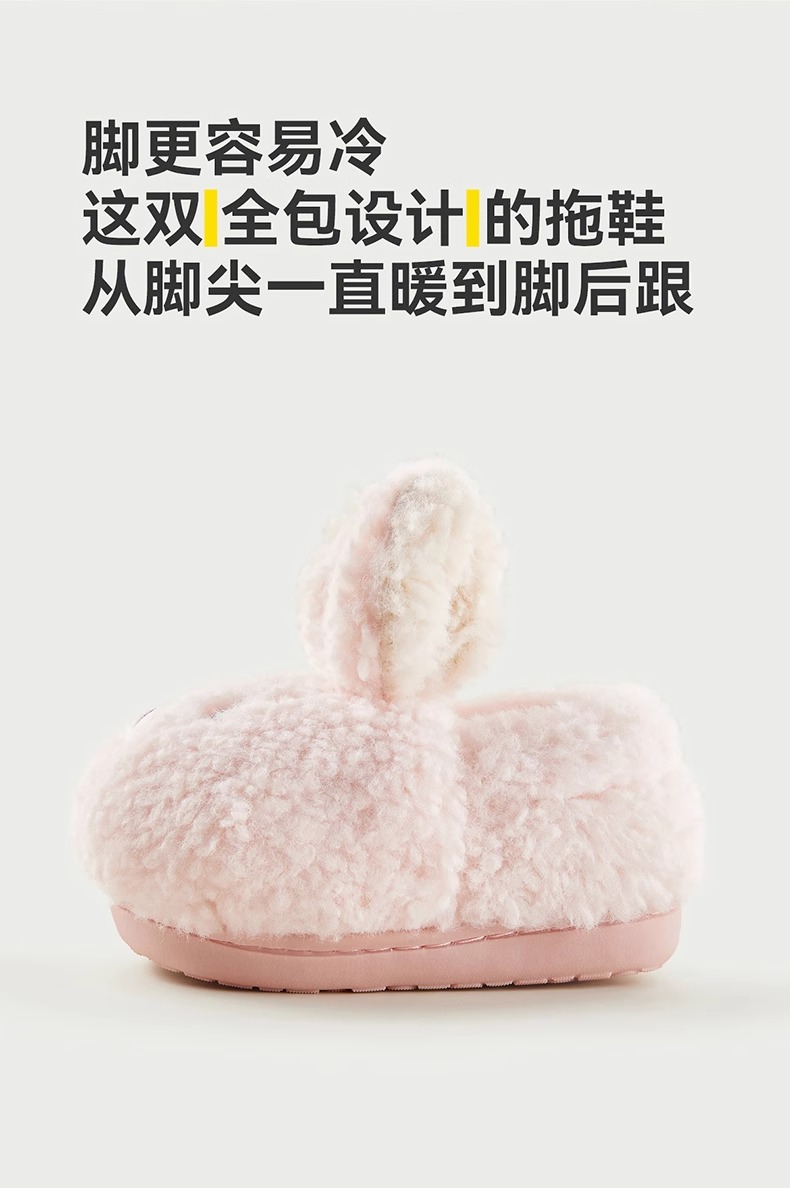 棉拖鞋儿童2024秋冬女童毛毛鞋粉色兔子平跟包跟绒面居家室内棉鞋