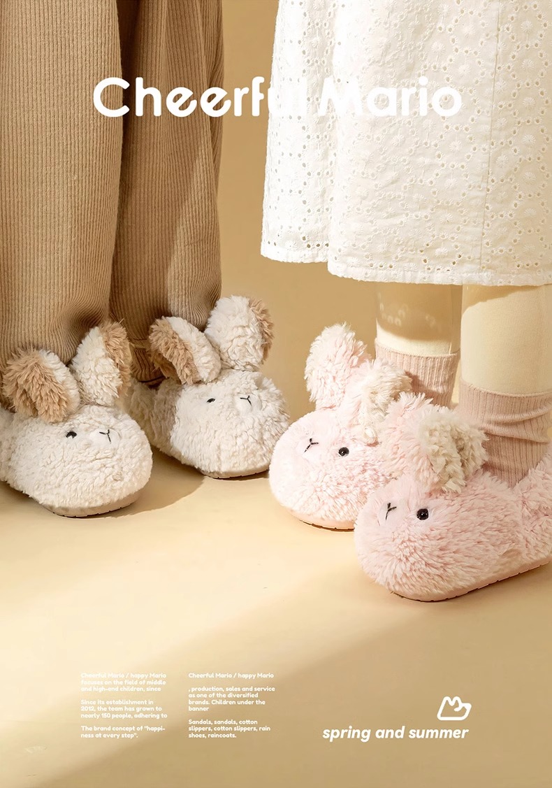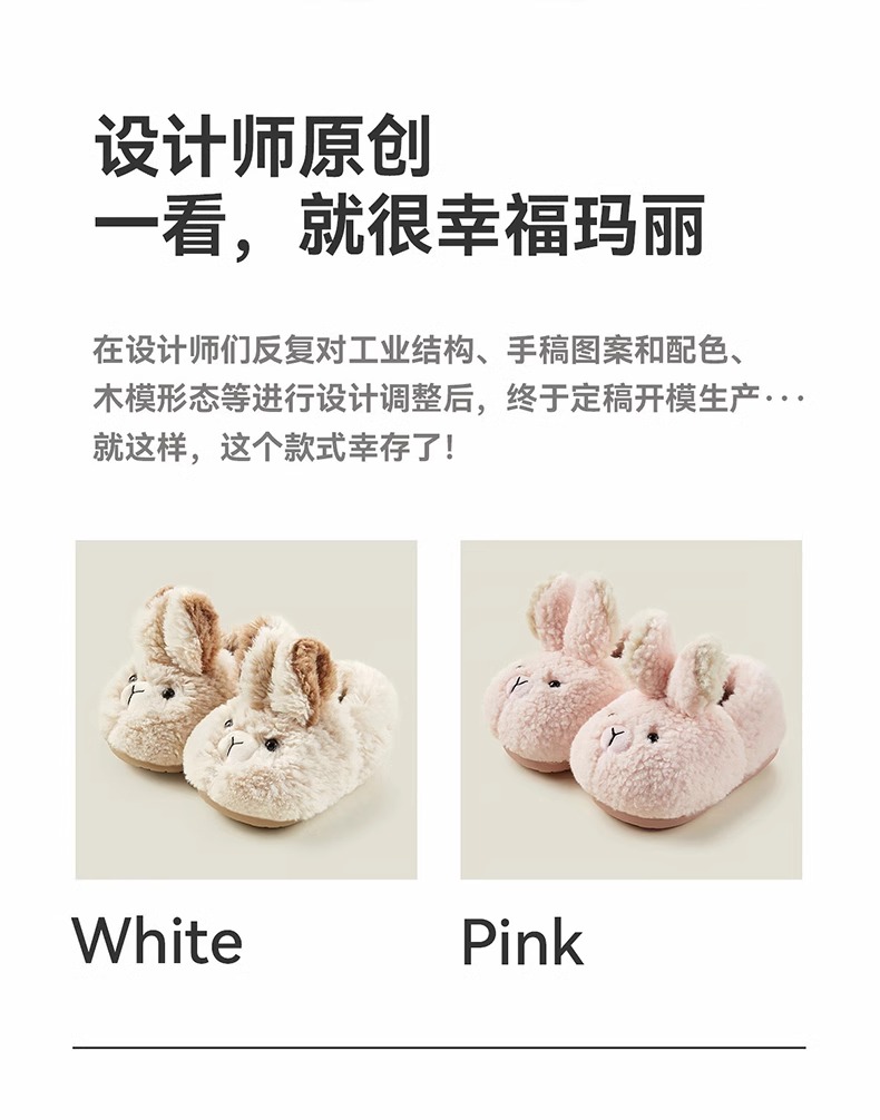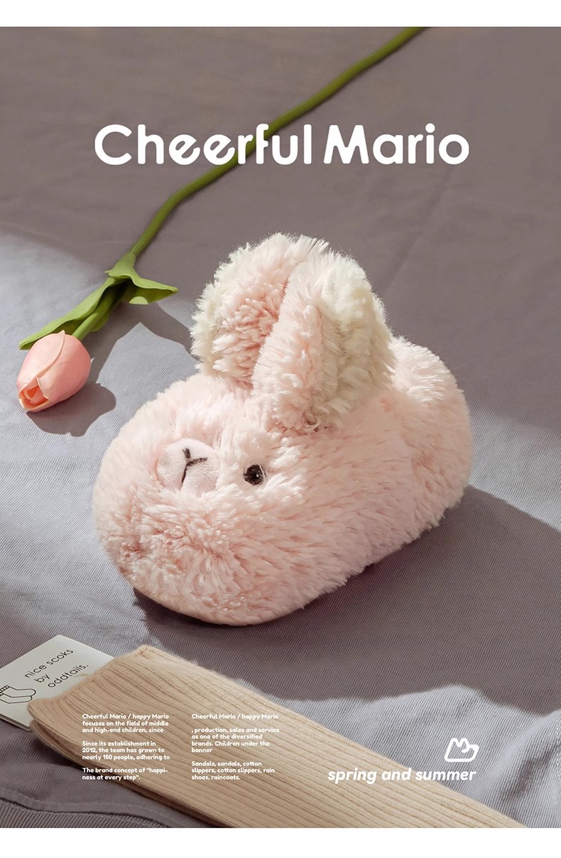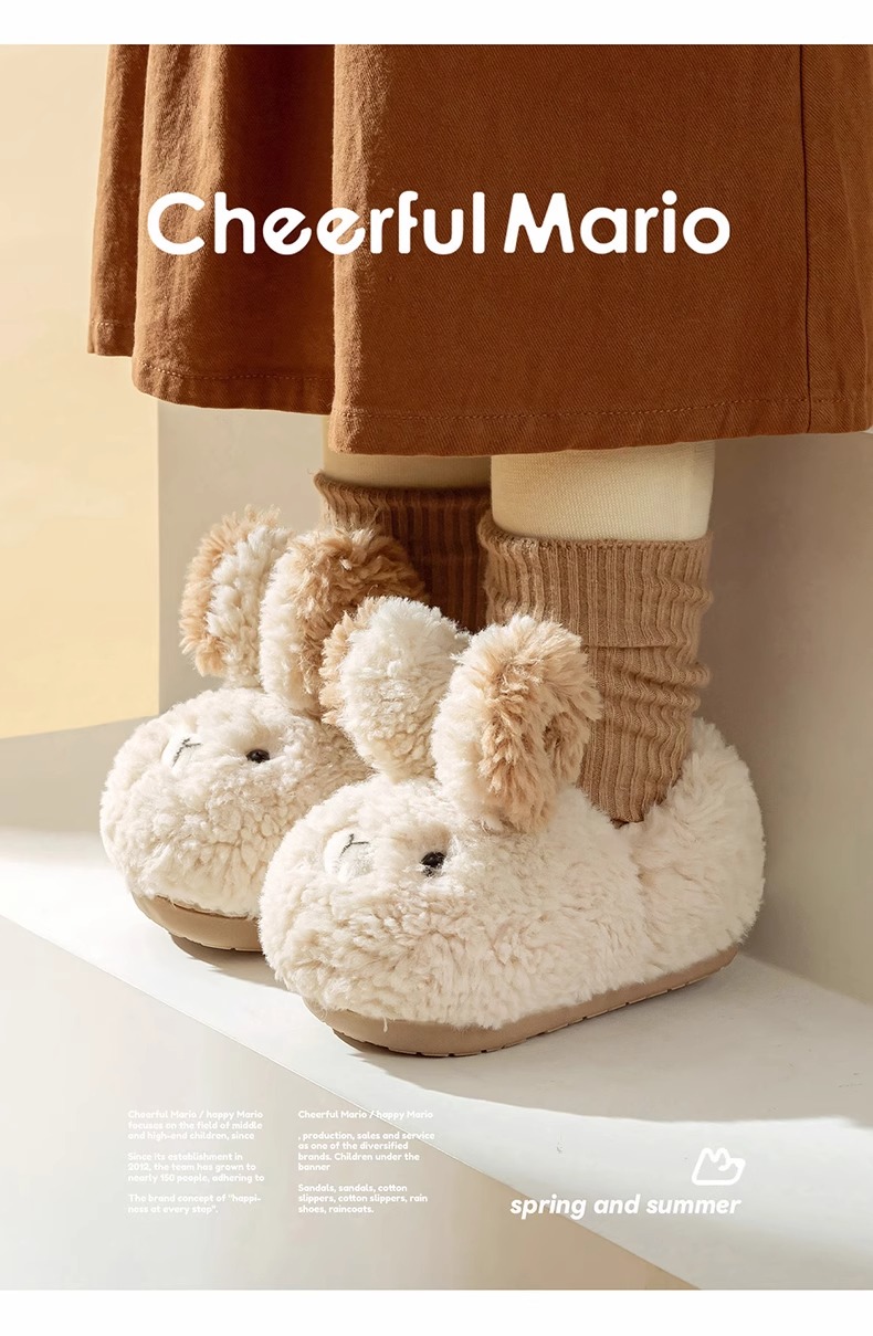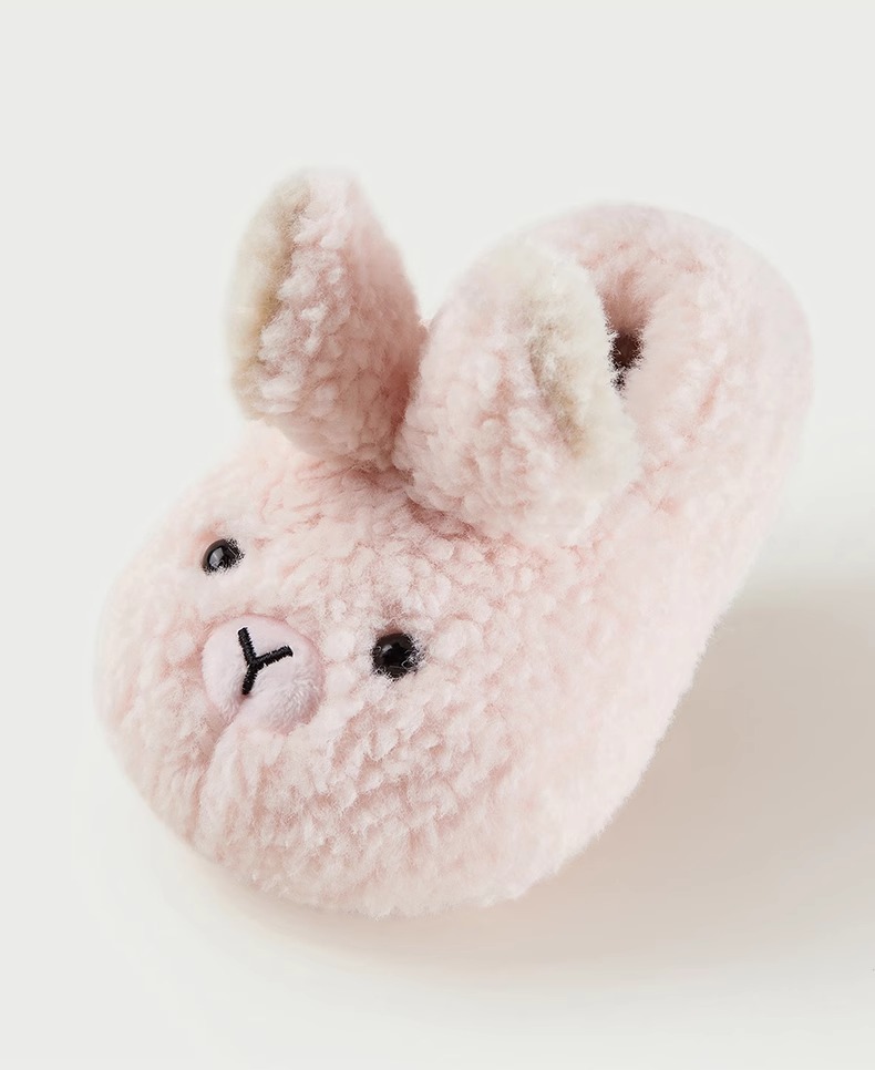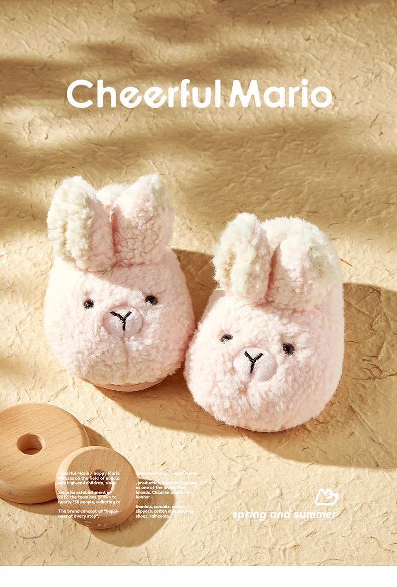 棉拖鞋儿童2024秋冬女童毛毛鞋粉色兔子平跟包跟绒面居家室内棉鞋