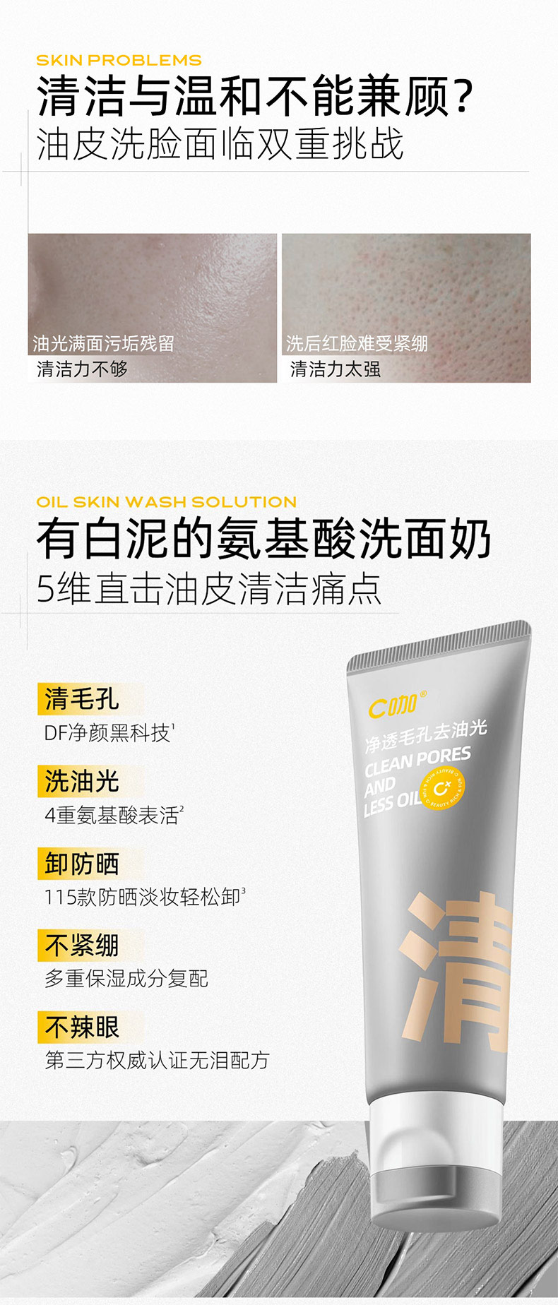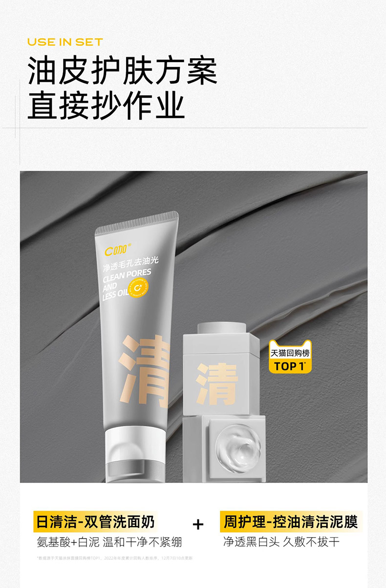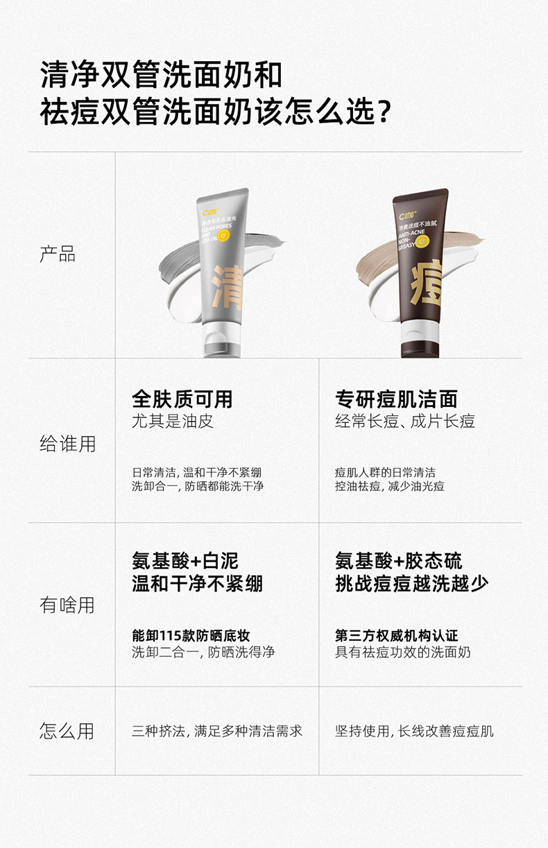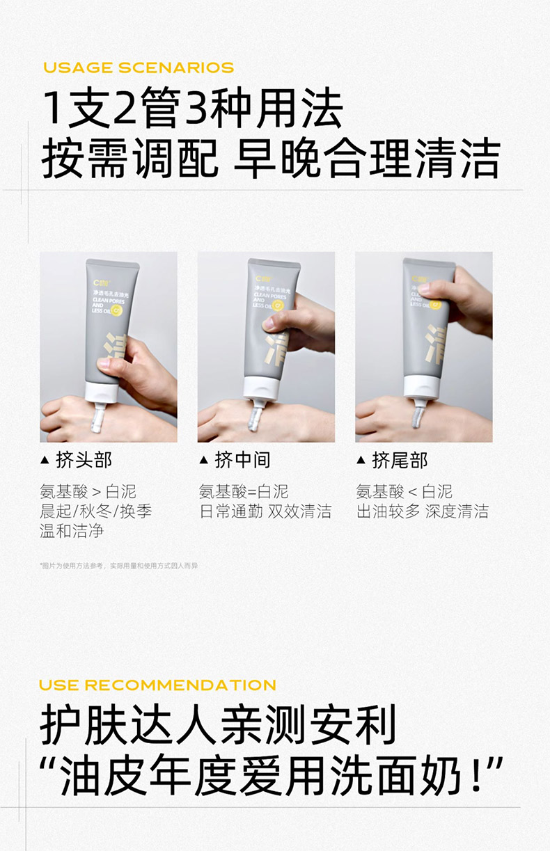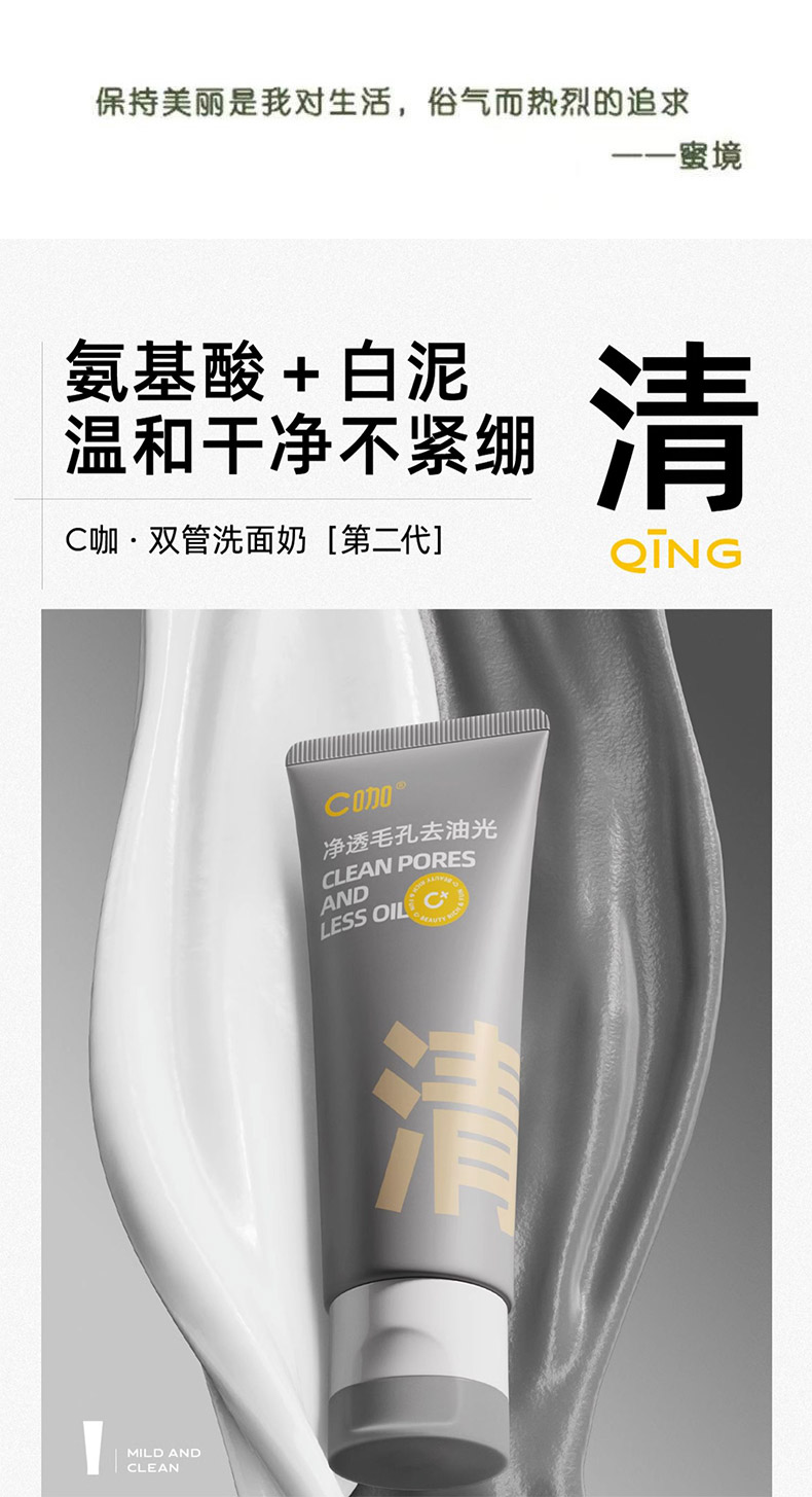 【积分兑】C咖氨基酸白泥清透净肤双管洁面乳100g洗面奶154596020