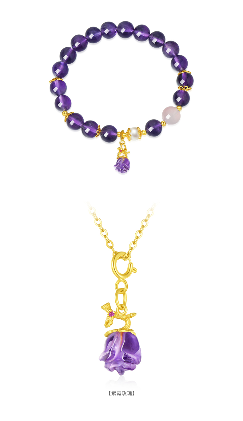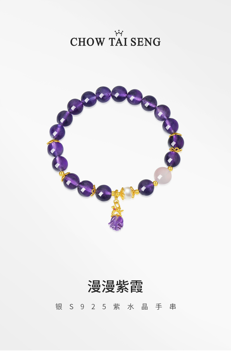 周大生如意普陀系列漫漫紫霞玛瑙手串紫水晶手链女纯银S925手饰珍珠简约礼物