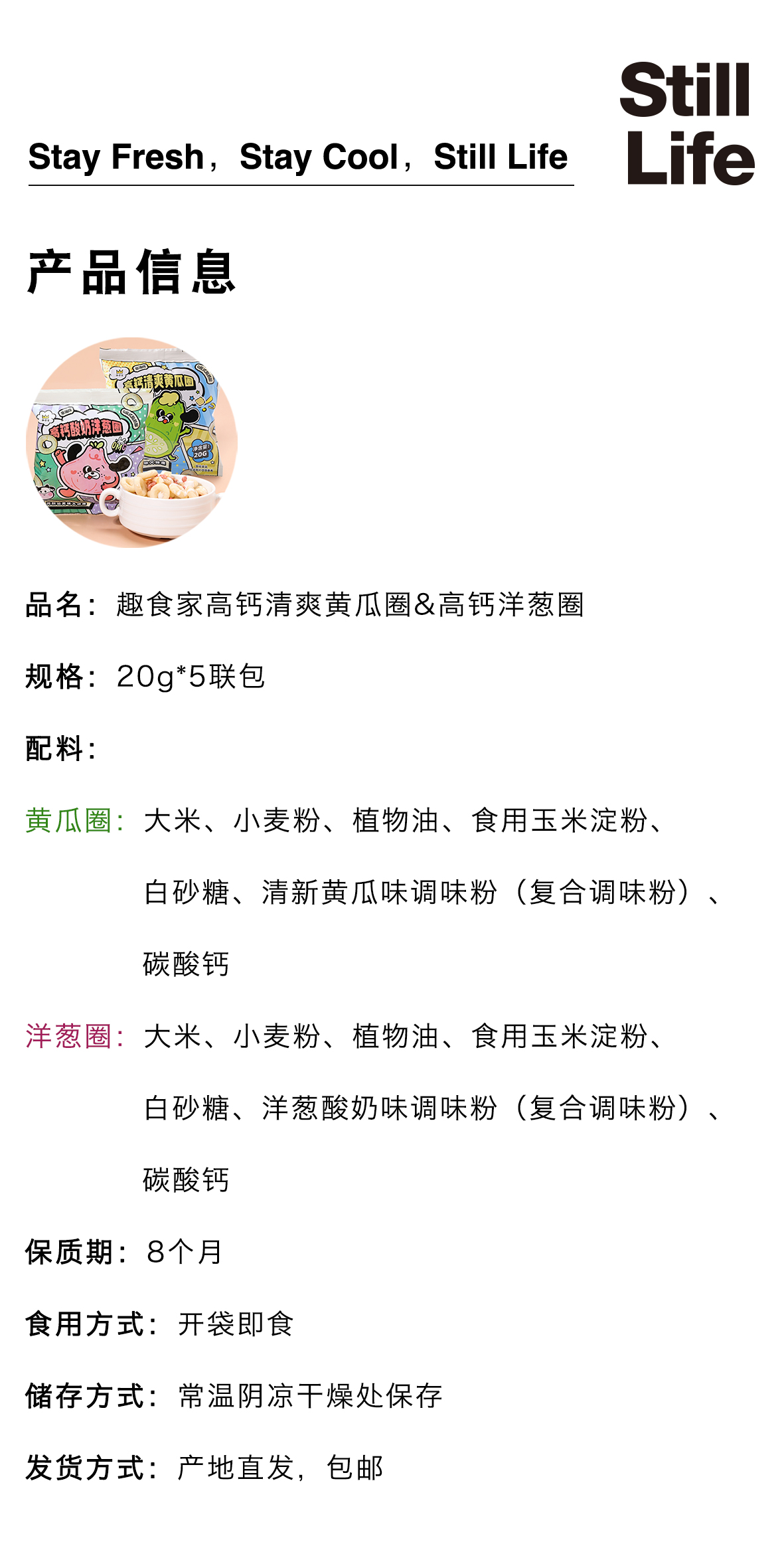 高钙谷物圈(洋葱圈/清爽黄瓜圈)20g*5联包【Y】