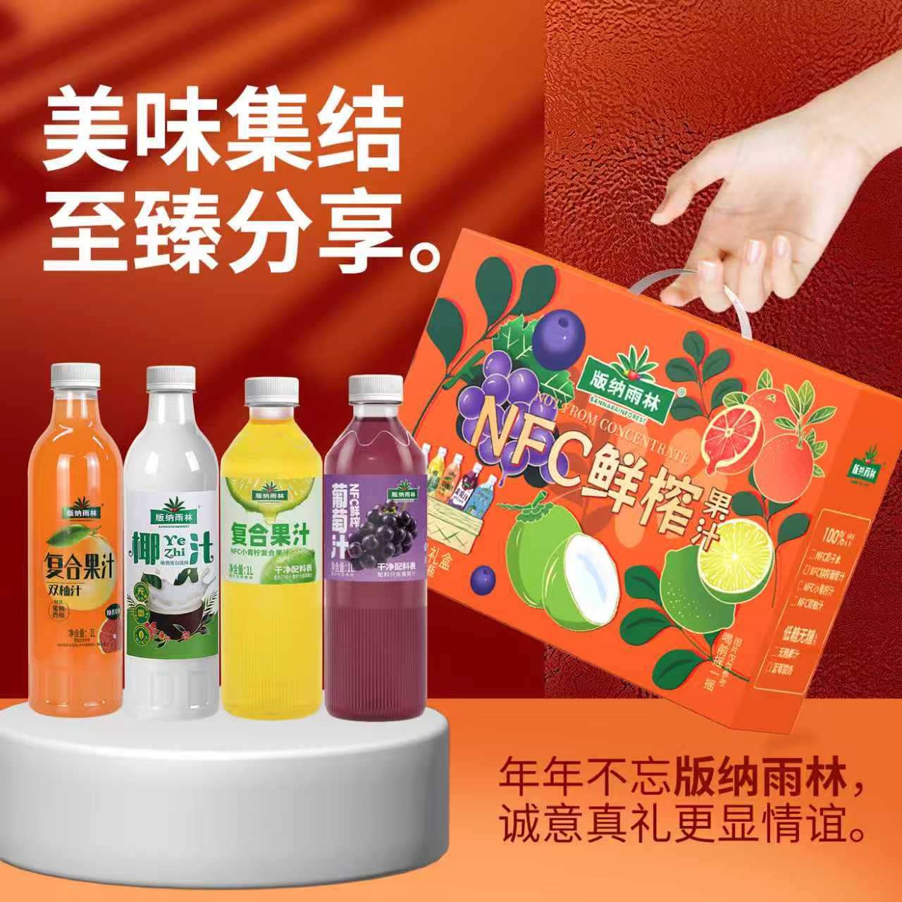 版纳雨林NFC果汁礼盒1L*4(葡萄+小青柠+双柚+椰汁)