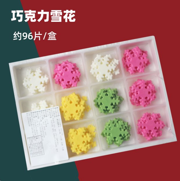 【特价,保质期到26.1.1】 巧克力插件配件 【雪花】 约96片/盒 圣诞巧克力彩色雪花 代可可脂巧克力装饰