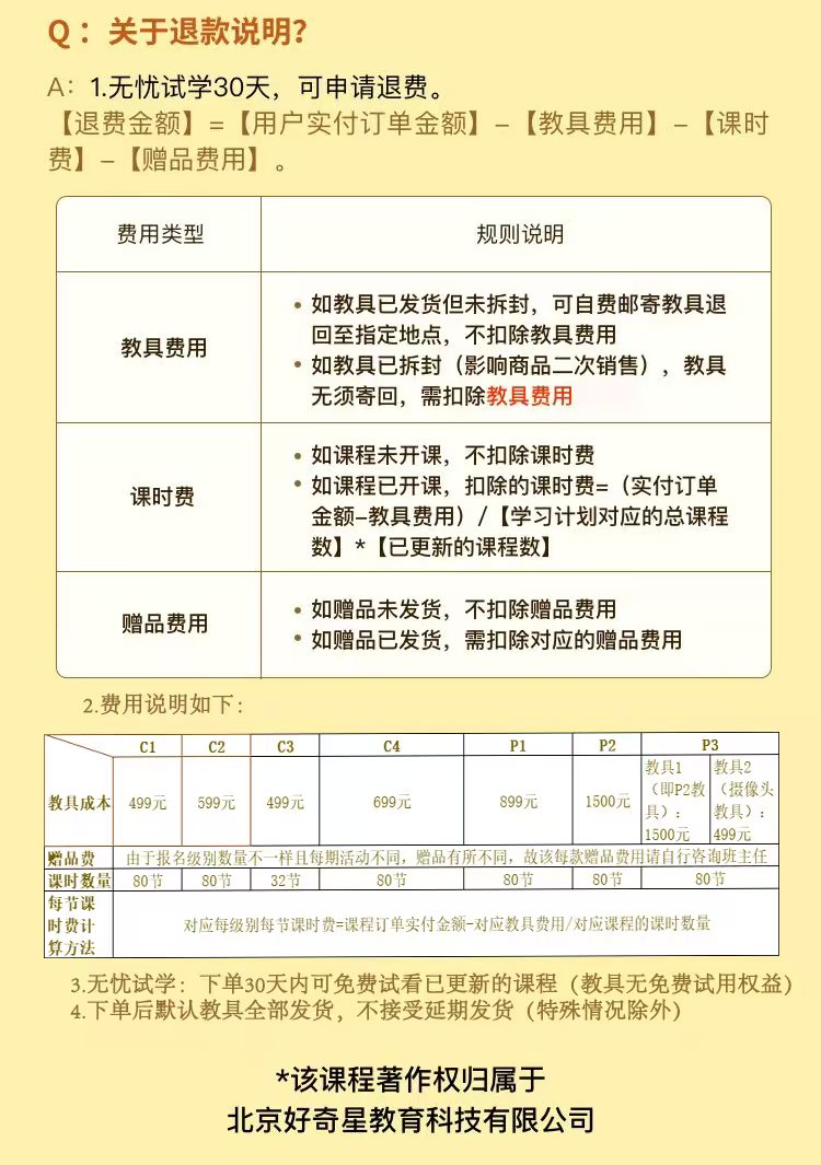 实物发货: 课程教具将在下单后3个工作日发货,以当地快递政策为准。