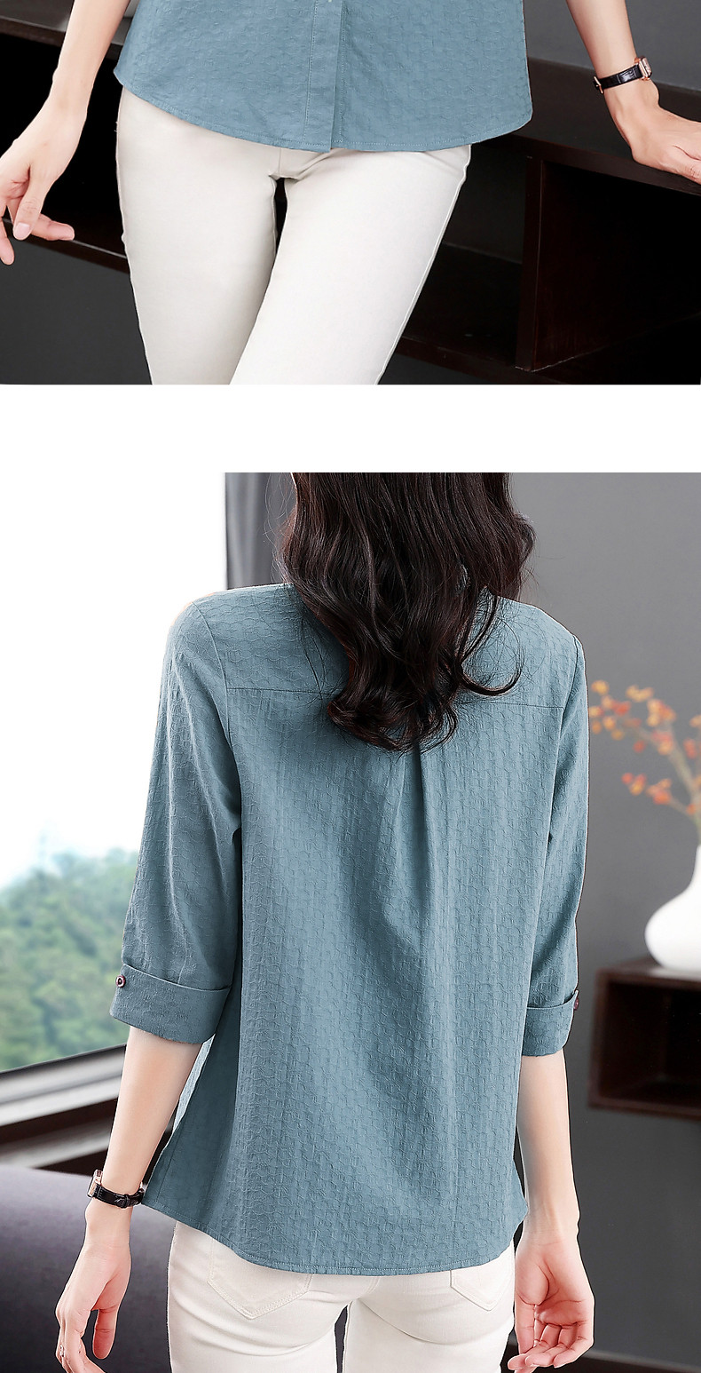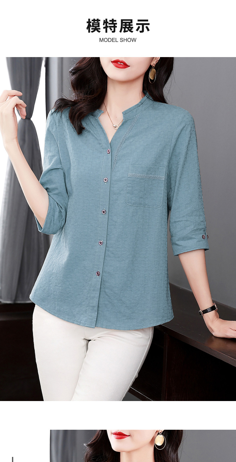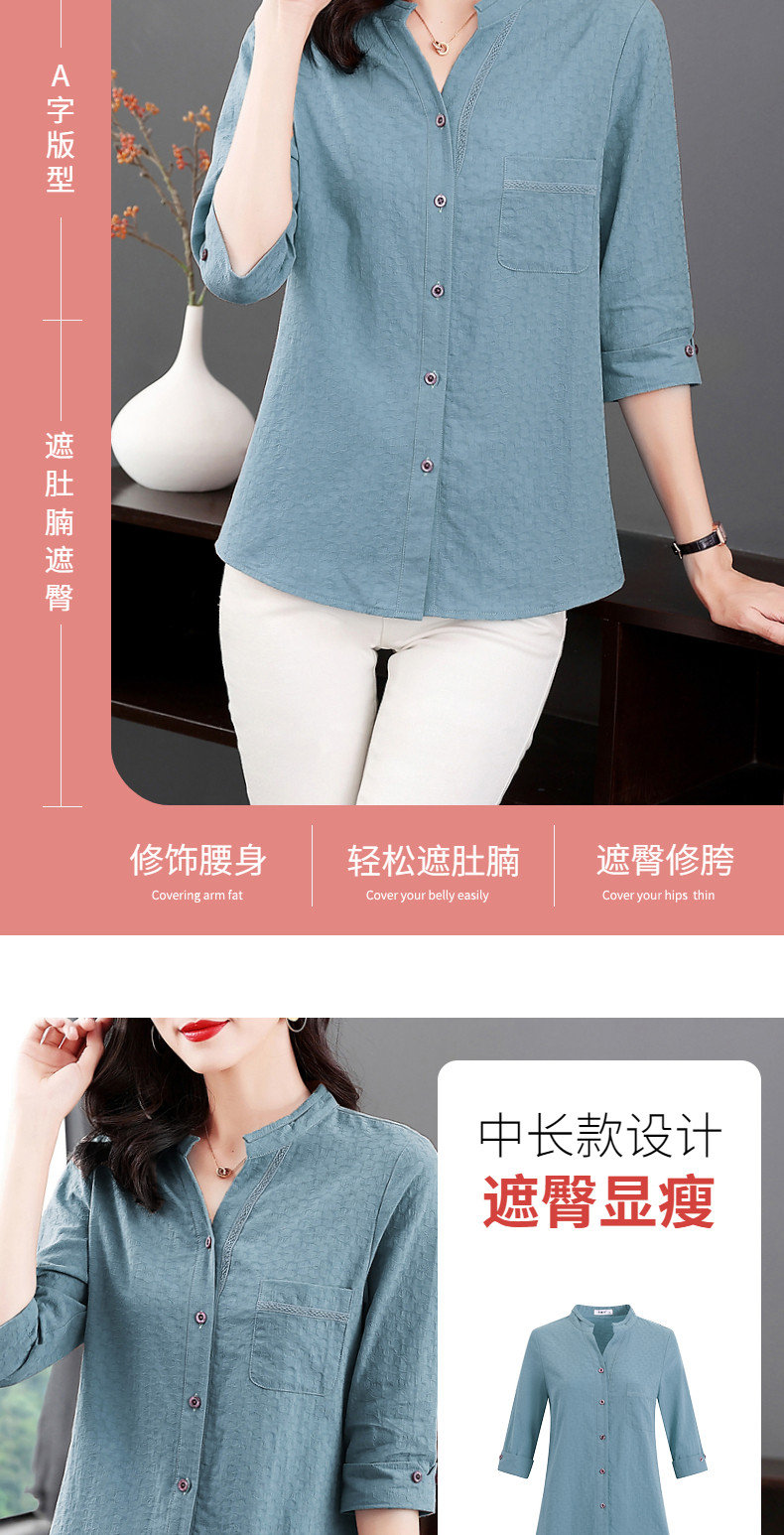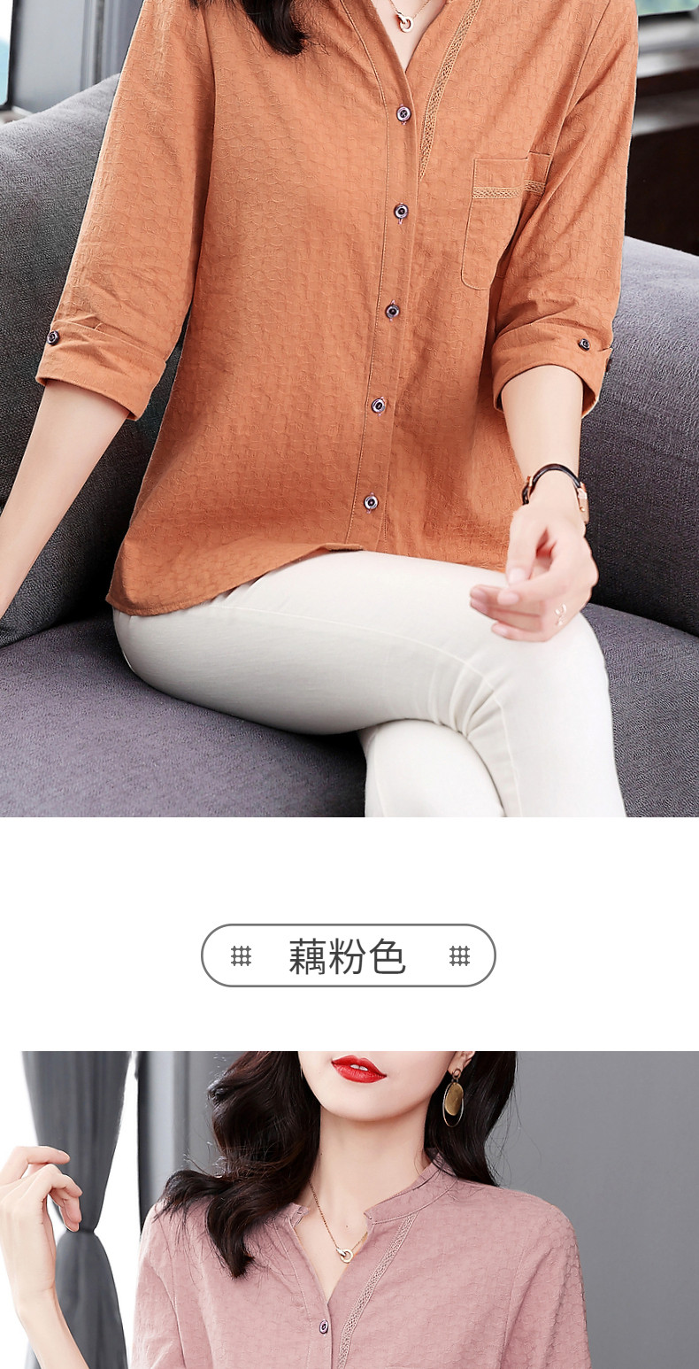 纯棉七分袖衬衫女2025新款春秋棉麻女士中年妈妈衬衣中袖全棉上衣
