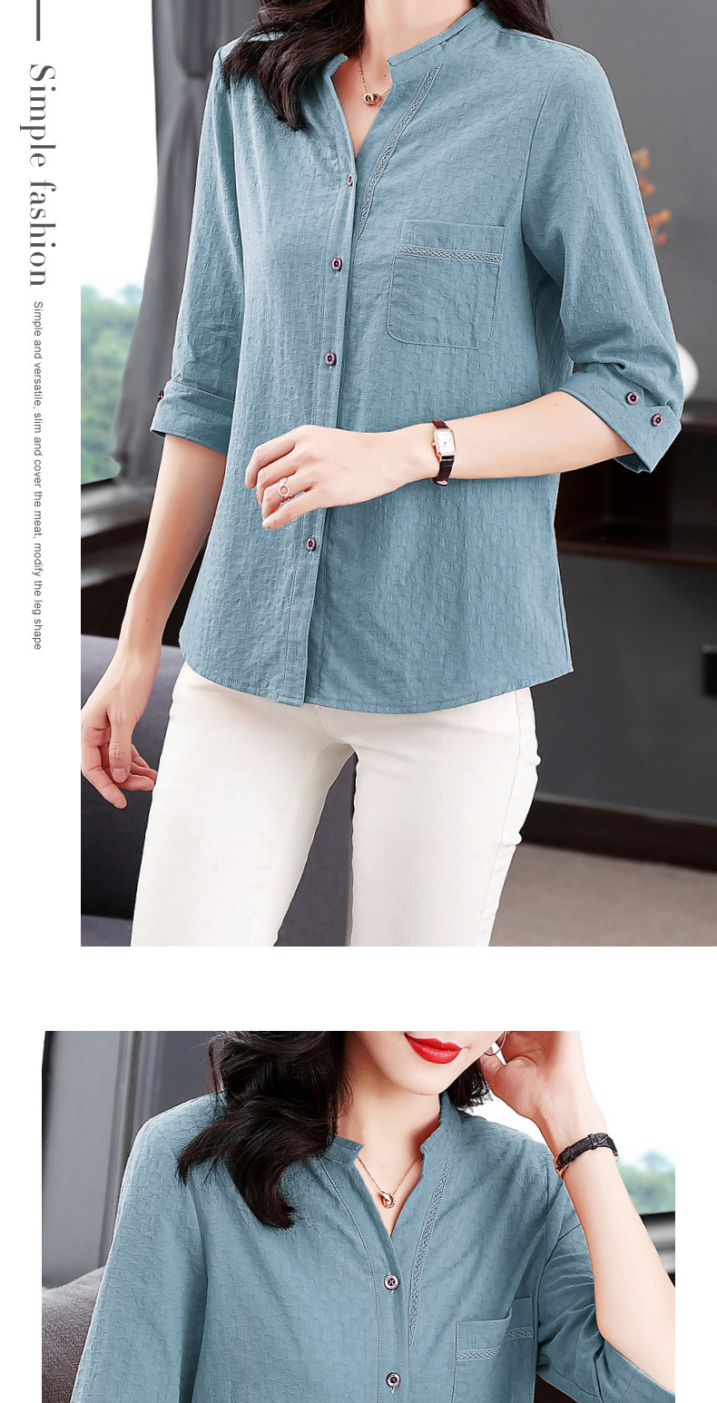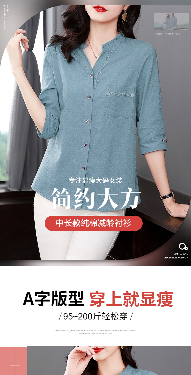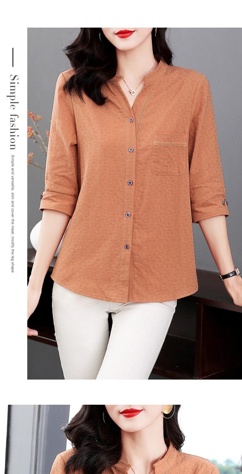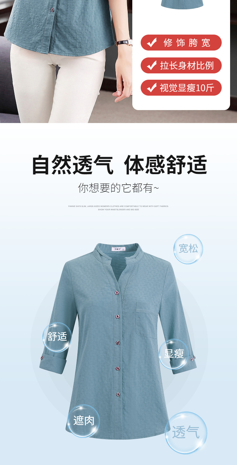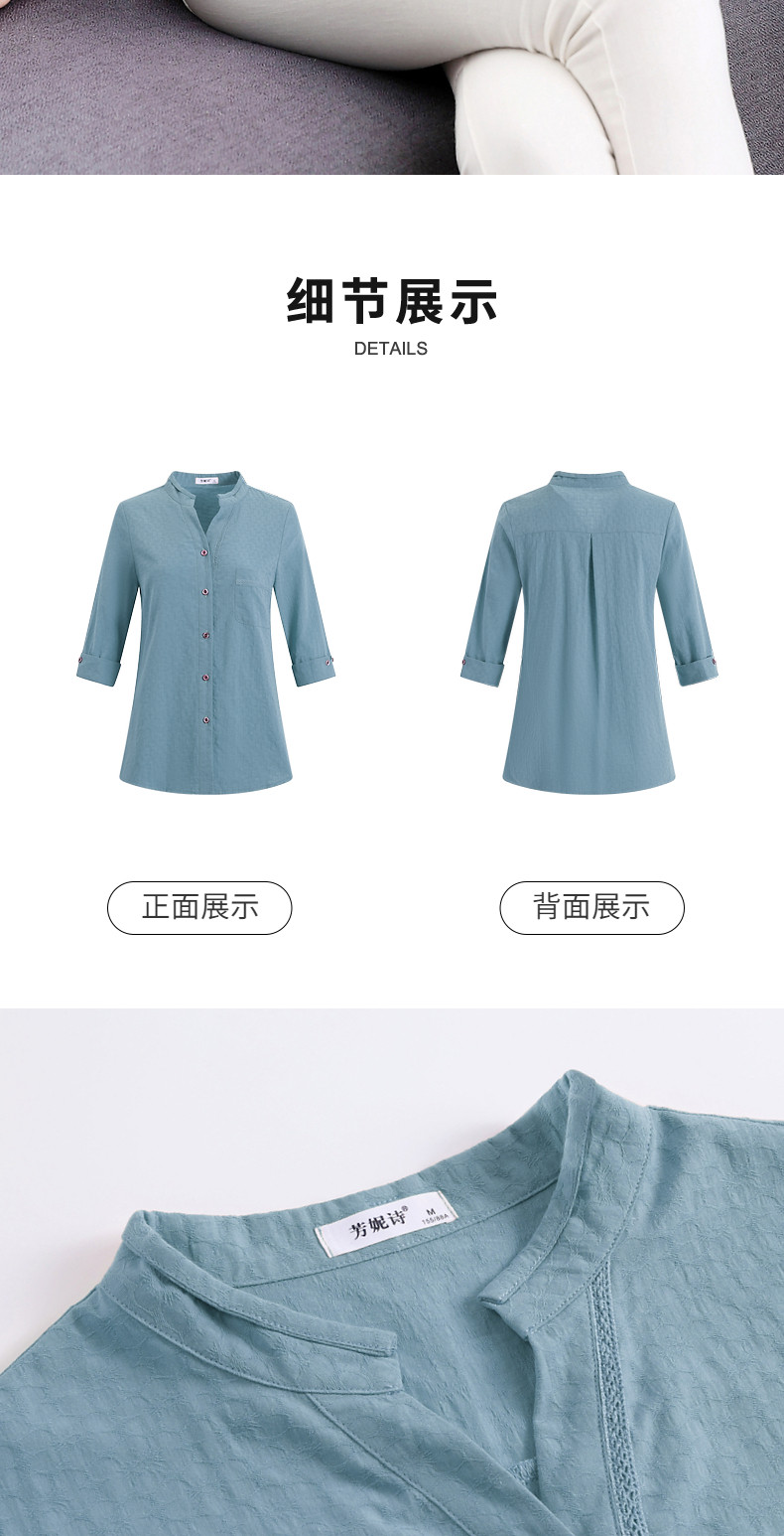 纯棉七分袖衬衫女2025新款春秋棉麻女士中年妈妈衬衣中袖全棉上衣