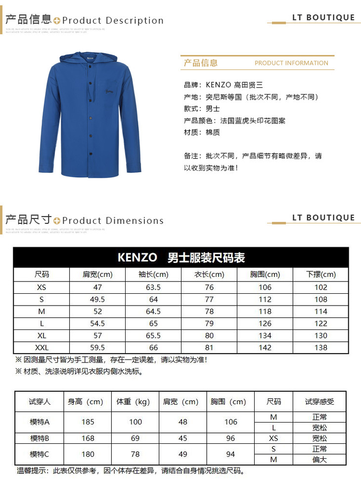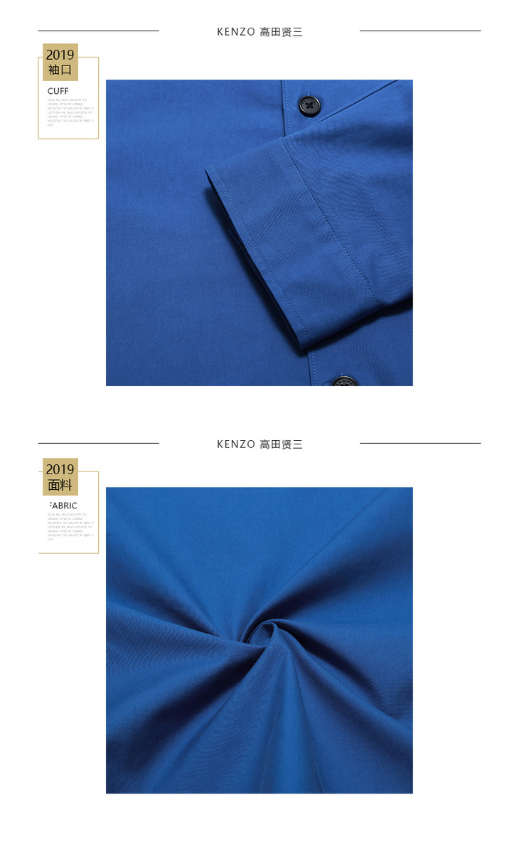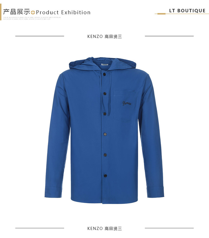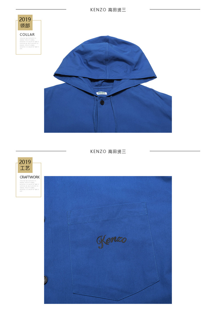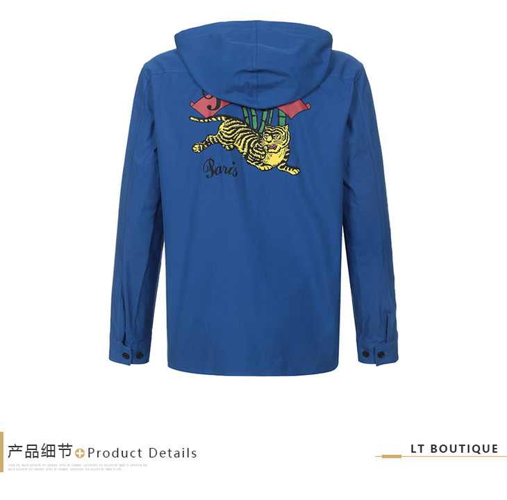 KENZO 高田贤三 男士法国蓝虎头印花图案棉质连帽长袖衬衫 蓝色 F955 CH422 1LC 74