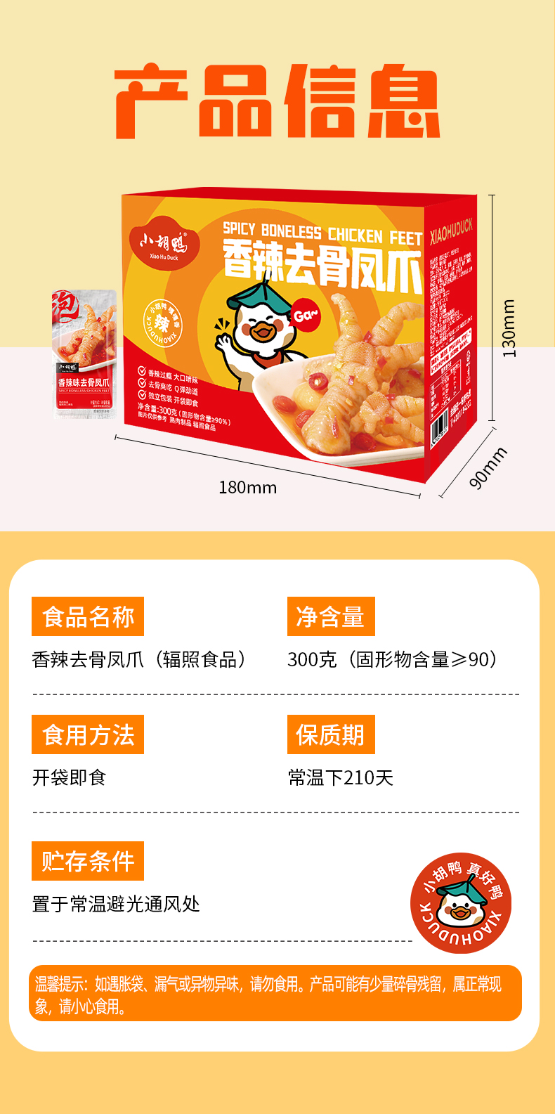 【严选】【爪大肉厚 不碱泡 不保水】小胡鸭香辣去骨凤爪 300克(厂家直发)
