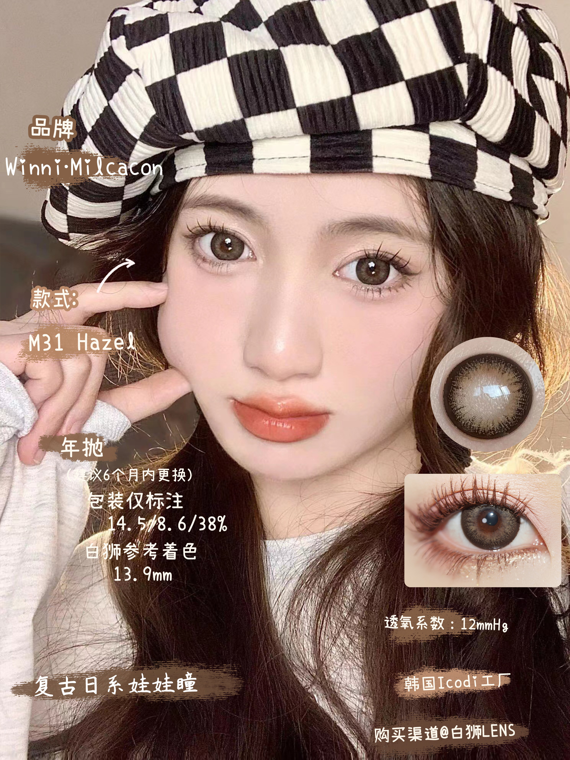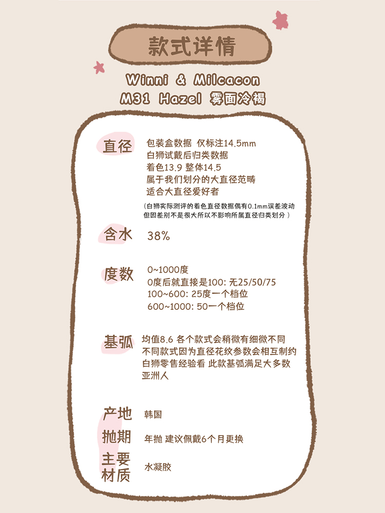 Winni&Milcacon旗下·M31 Hazel 雾面冷褐·14.5mm白狮参考着色大直径 年抛
