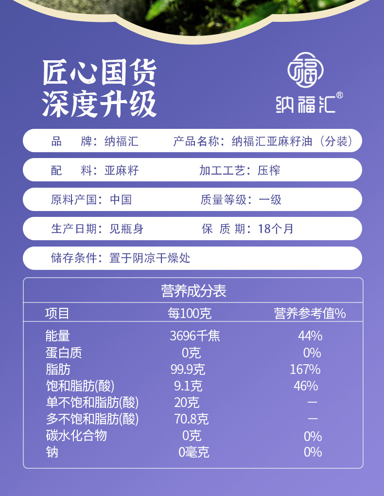 纳福汇冷榨亚麻籽油礼盒500ml*2