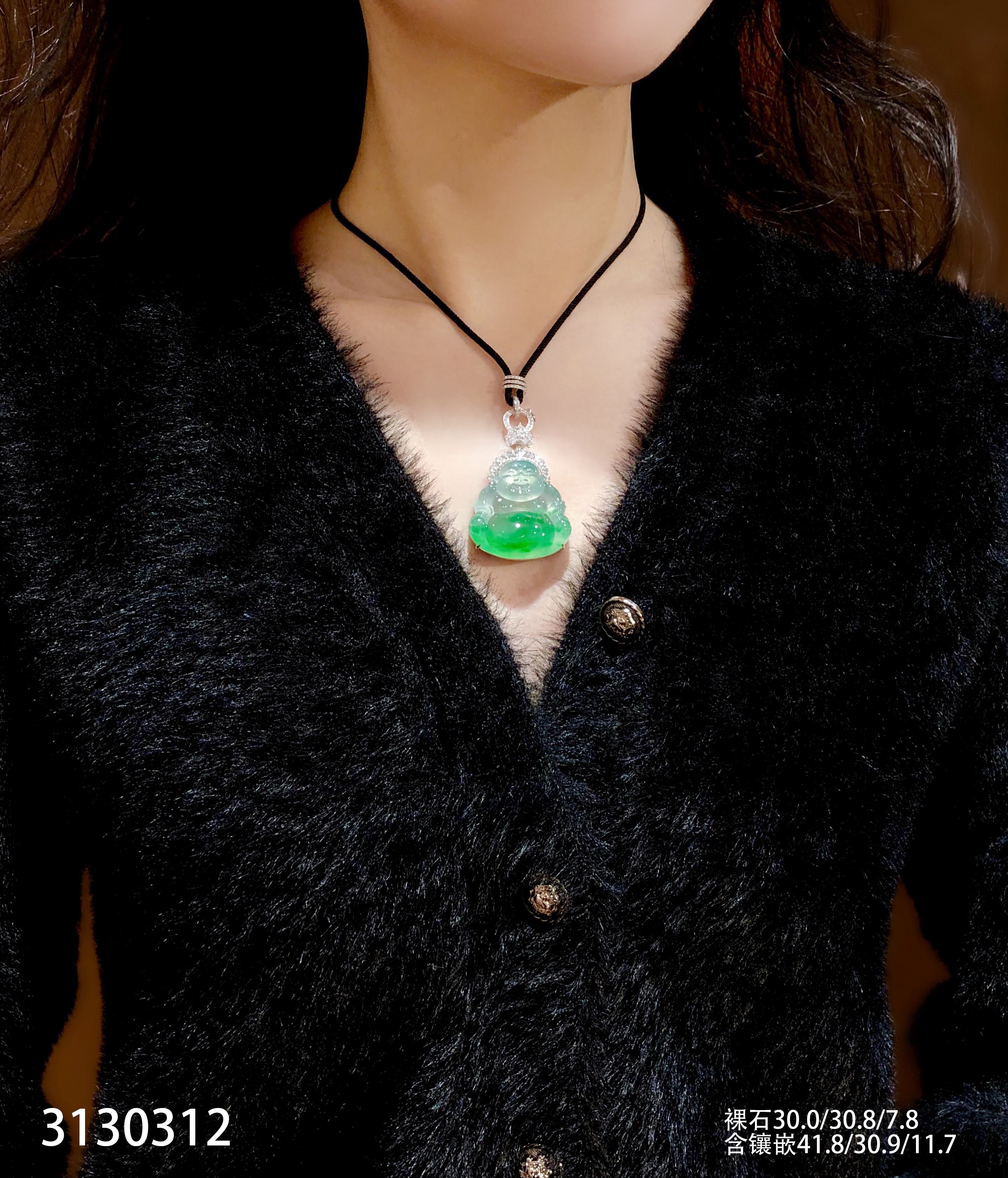 玻璃种飘翠佛公吊坠【3130312】具体价格微信咨询
