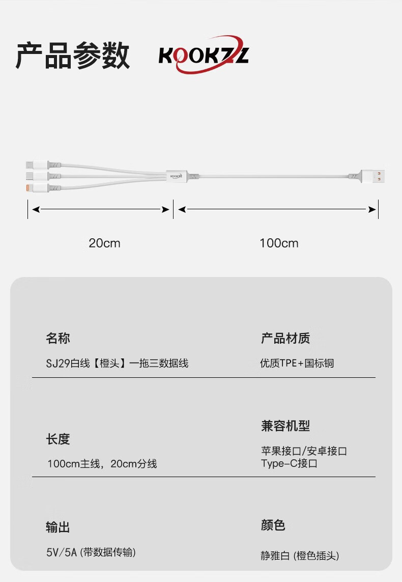 【分仓直发包邮】KOOKZZ酷客者超级快充一拖三数据线SJ29