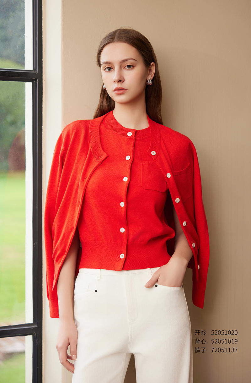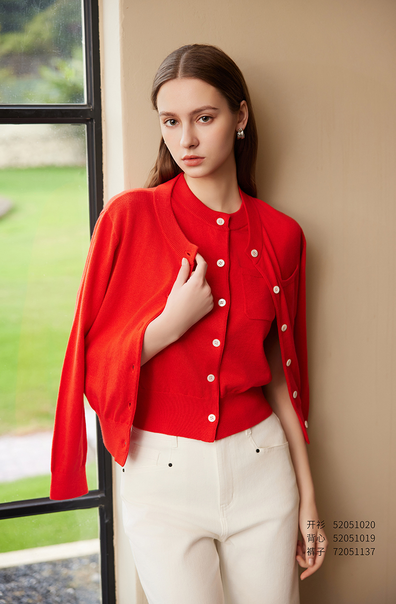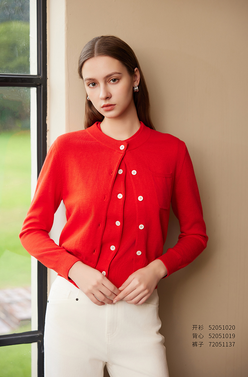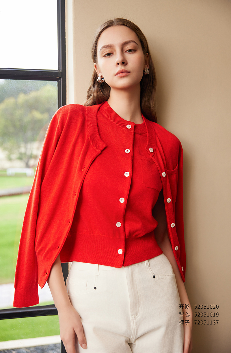 【棉质针织开衫】25年春季新品女士圆领针织开衫红色薄款小外套