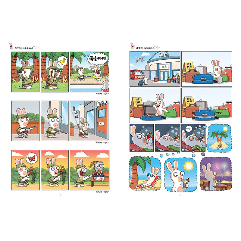 《疯狂兔子爆笑漫画书》共12册,每册包含了多个有趣的小故事,讲述了喜欢模仿人类行为的外星侵略者——疯狂兔子“入侵”地球后,和人类之间发生的各种各样的趣事,笑话百出。该系列漫画将法式幽默融入精彩情节中,个性鲜明的动漫形象,风趣幽默的主题,别具一格的创意,线条流畅的图像化语言……每一页都能激发读者的想象力,让人获得轻松愉悦的阅读体验。本册讲述疯狂兔子正在海里畅游,一条突然出现的“鲨鱼”把它吓了一跳。原来,“鲨鱼”是男孩假扮的。气愤的疯狂兔子会展开怎样的反击呢?