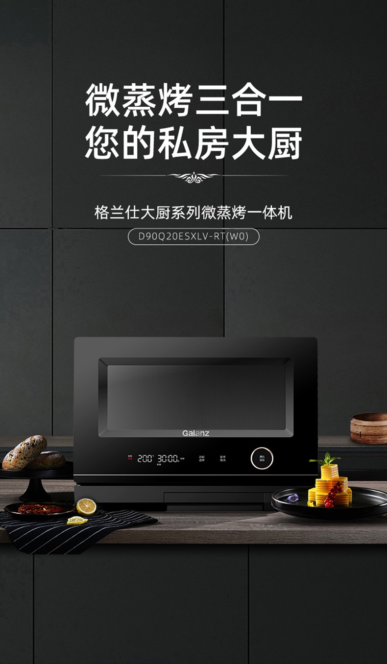 格兰仕D90Q20ESXLV-RT(W0)微蒸烤一体20L不锈钢内胆微波炉 20L 黑色